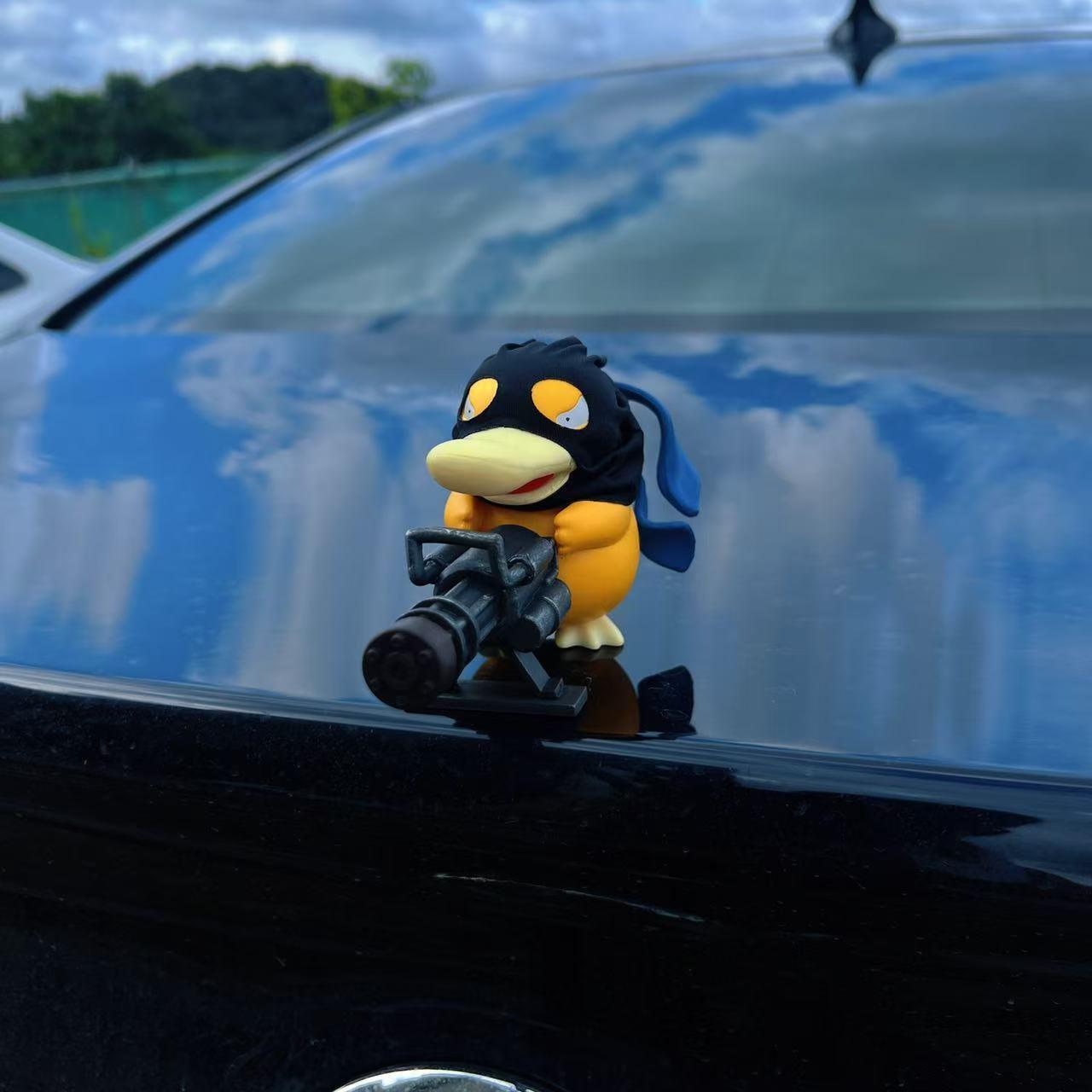 车载马路悍匪加特林可达鸭中控台创意装饰品车尾后备箱公仔摆件