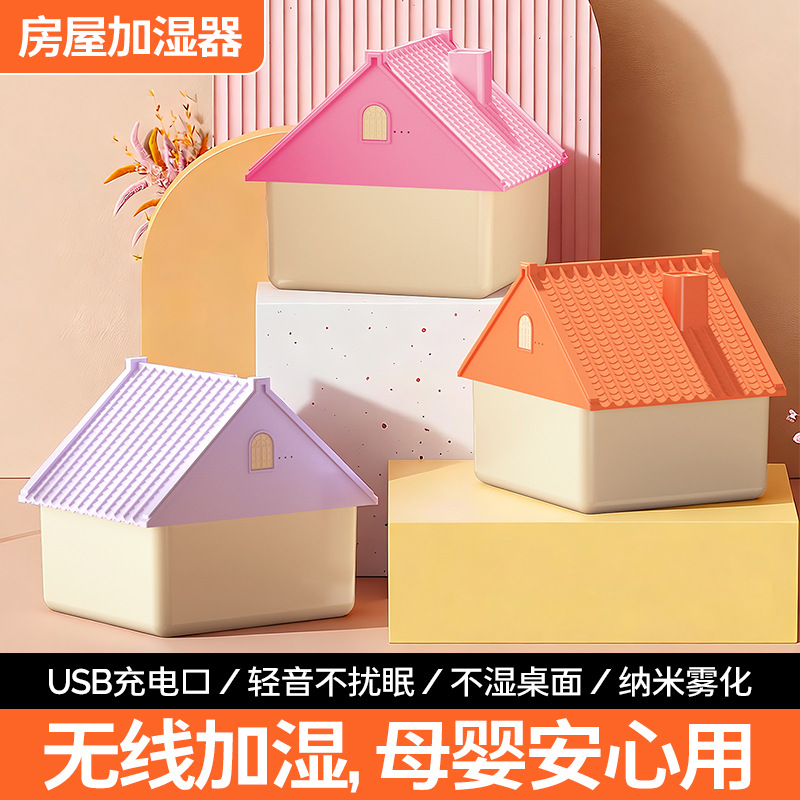跨境新款房屋USB加湿器学生宿舍桌面静音喷雾器便携式夜灯香薰机