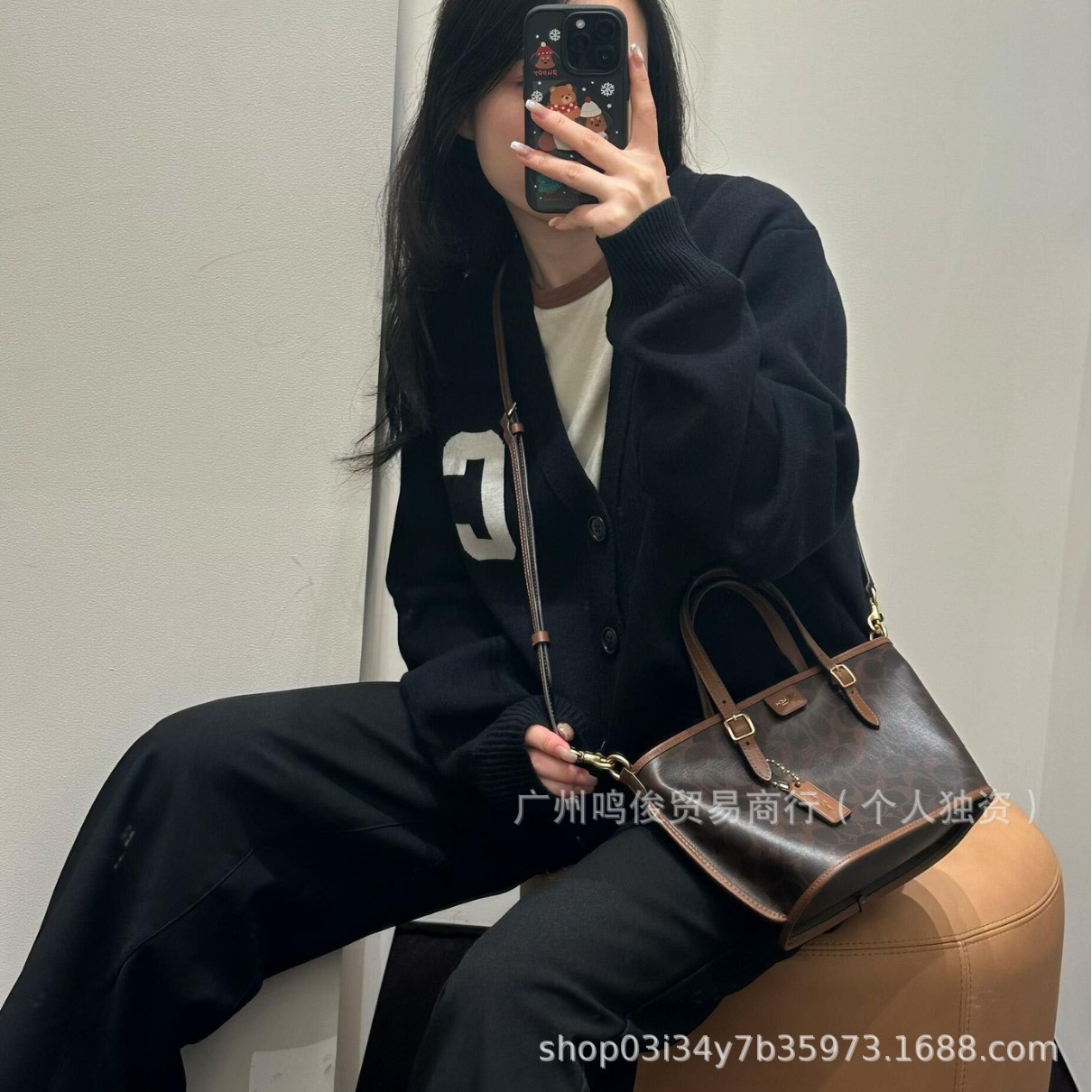 寇家新款高品质taxi21菜篮子包真皮老花复古手提女包单肩包斜挎包