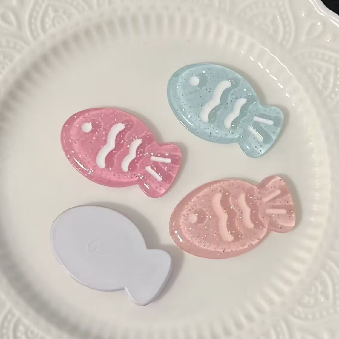 可爱细闪粉色小鱼手工diy配件发饰发夹手机壳洞洞鞋配件材料批发