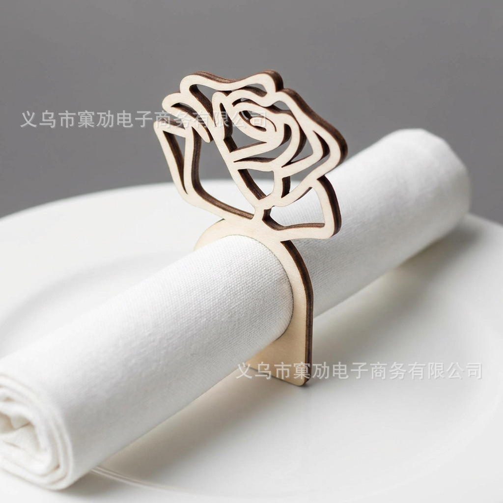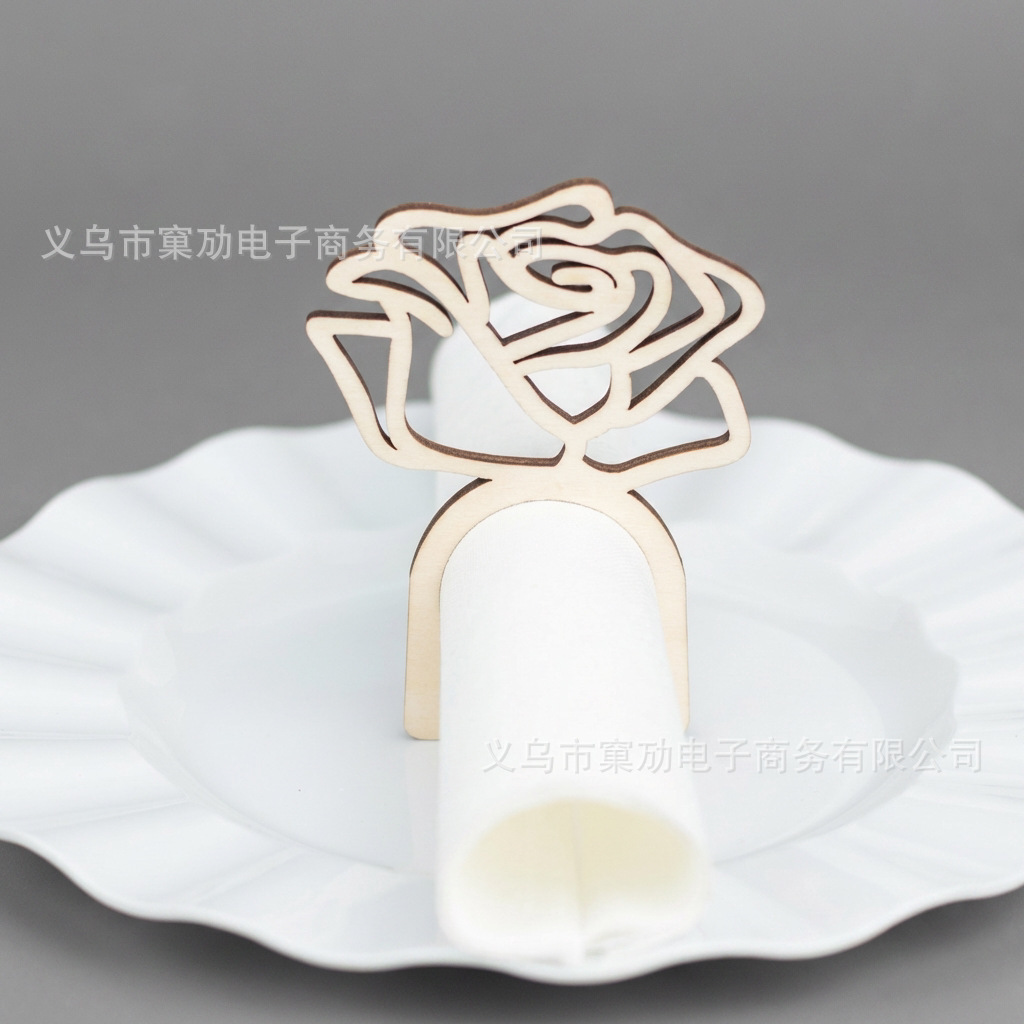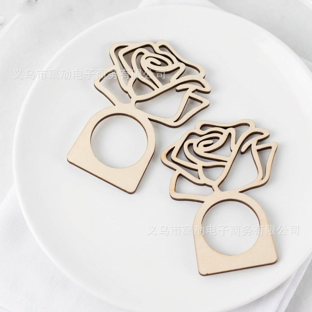 跨境玫瑰花木片餐巾环餐桌用品DIY家居派对装饰纸木制品摆件工艺