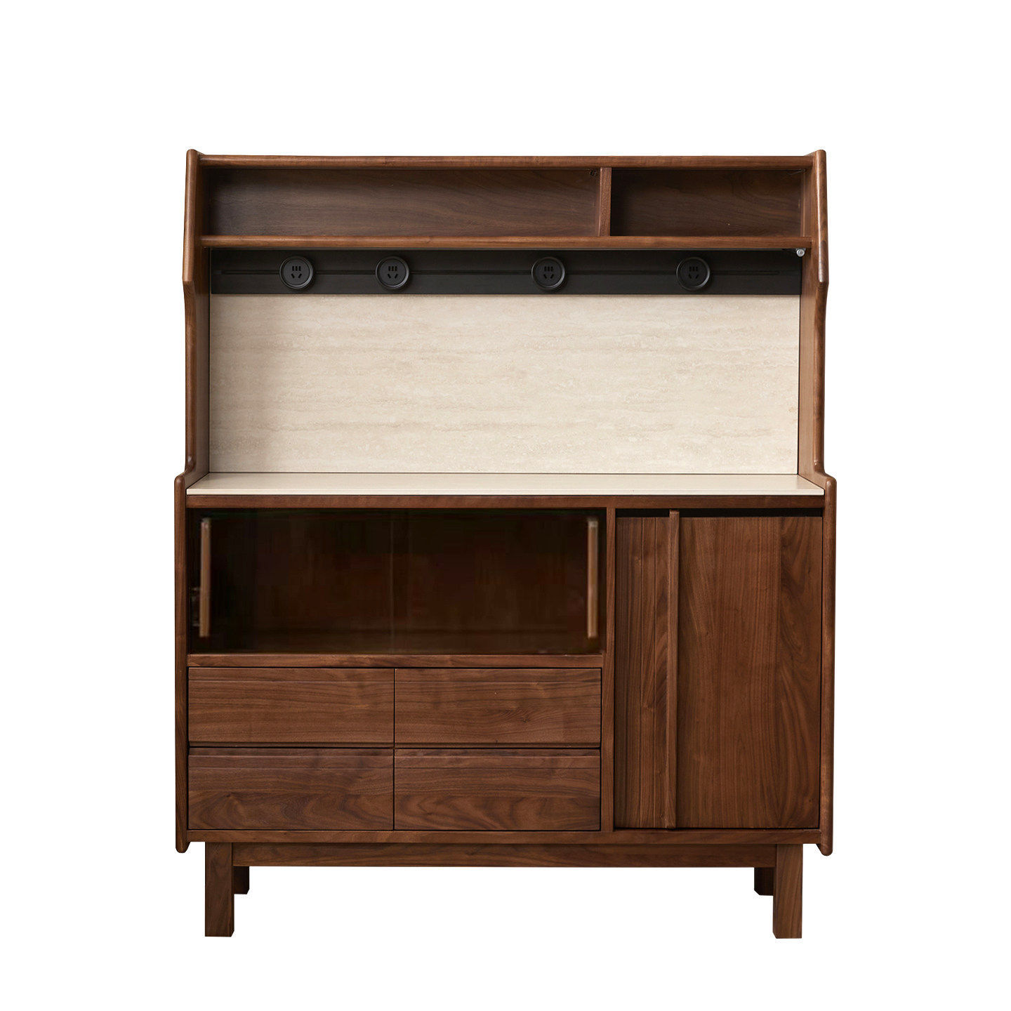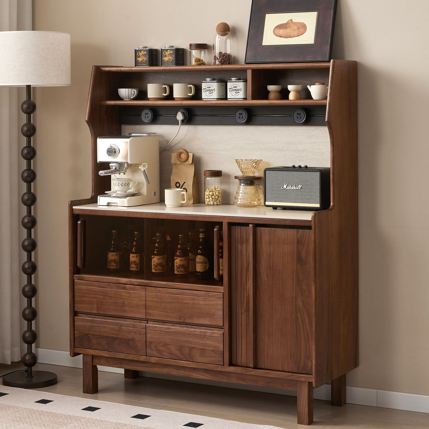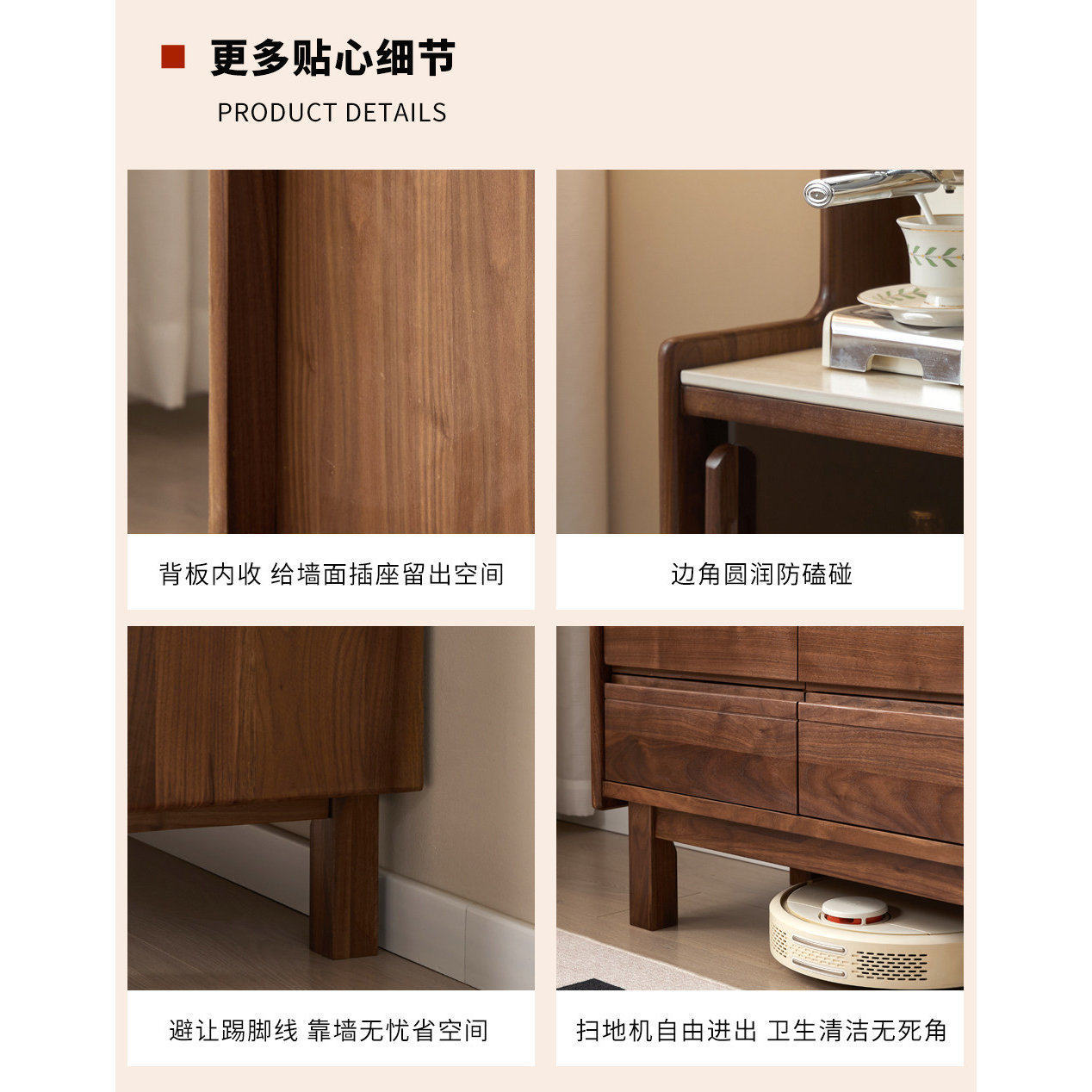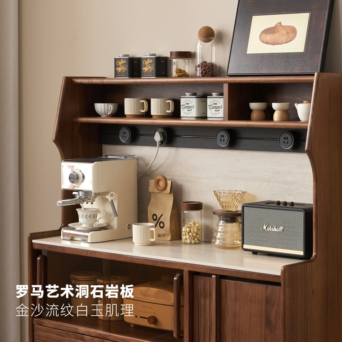 北美黑胡桃木岩板餐边柜实木咖啡储物柜中古风靠墙一体收纳茶水柜