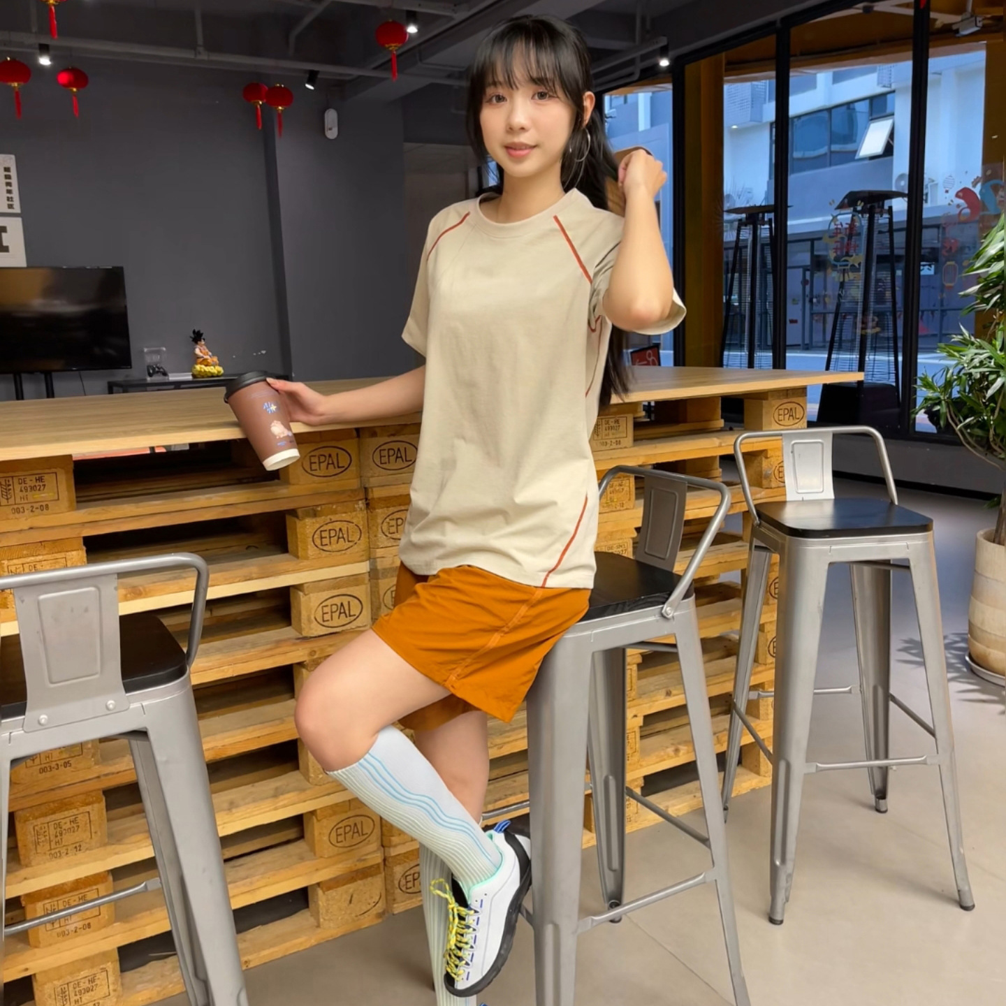 山系机能风户外透气拼接撞色字母印花圆领短袖T恤短裤男女款套装