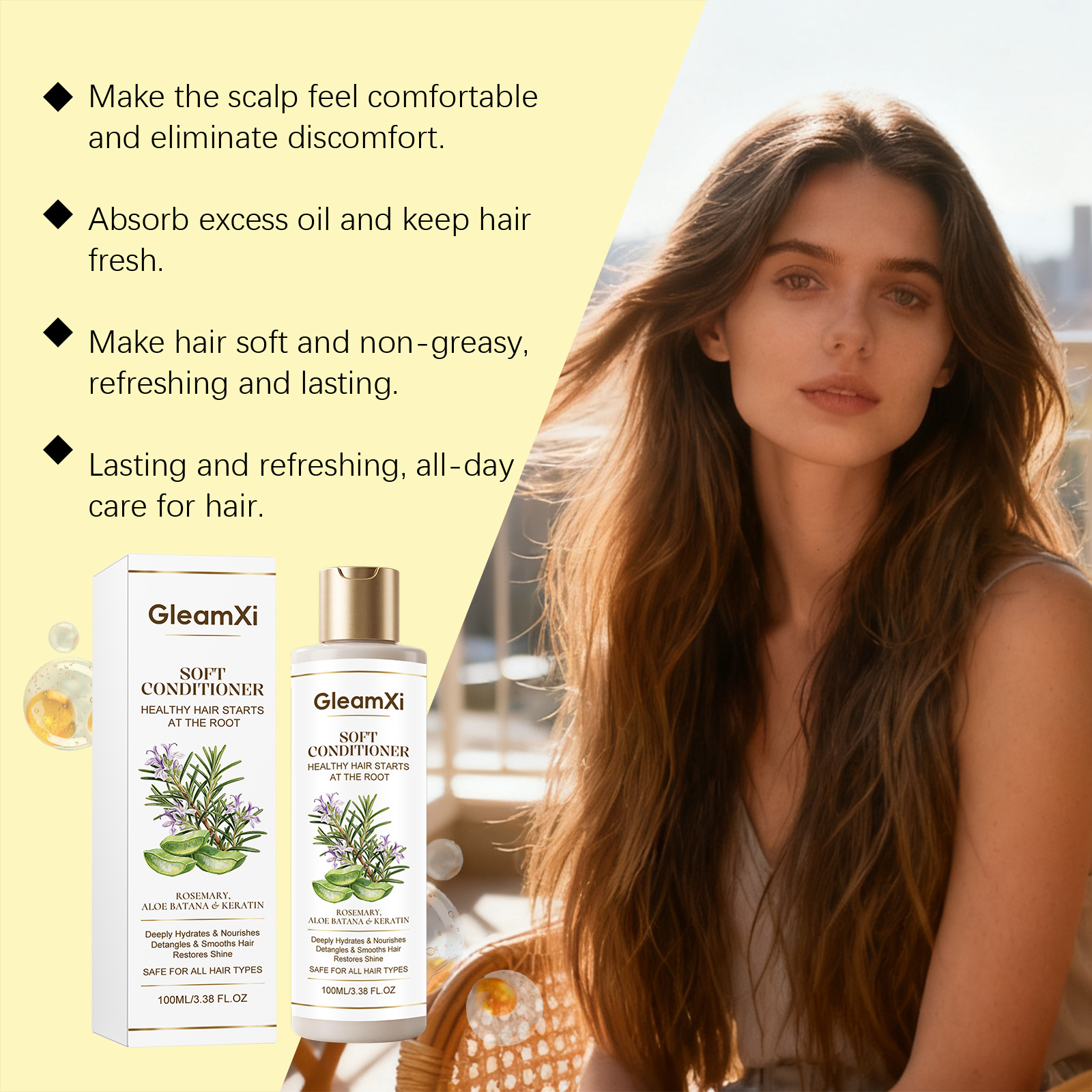 GleamXi 迷迭香柔顺护发素 柔亮发丝顺滑易梳理温和日常发质护理