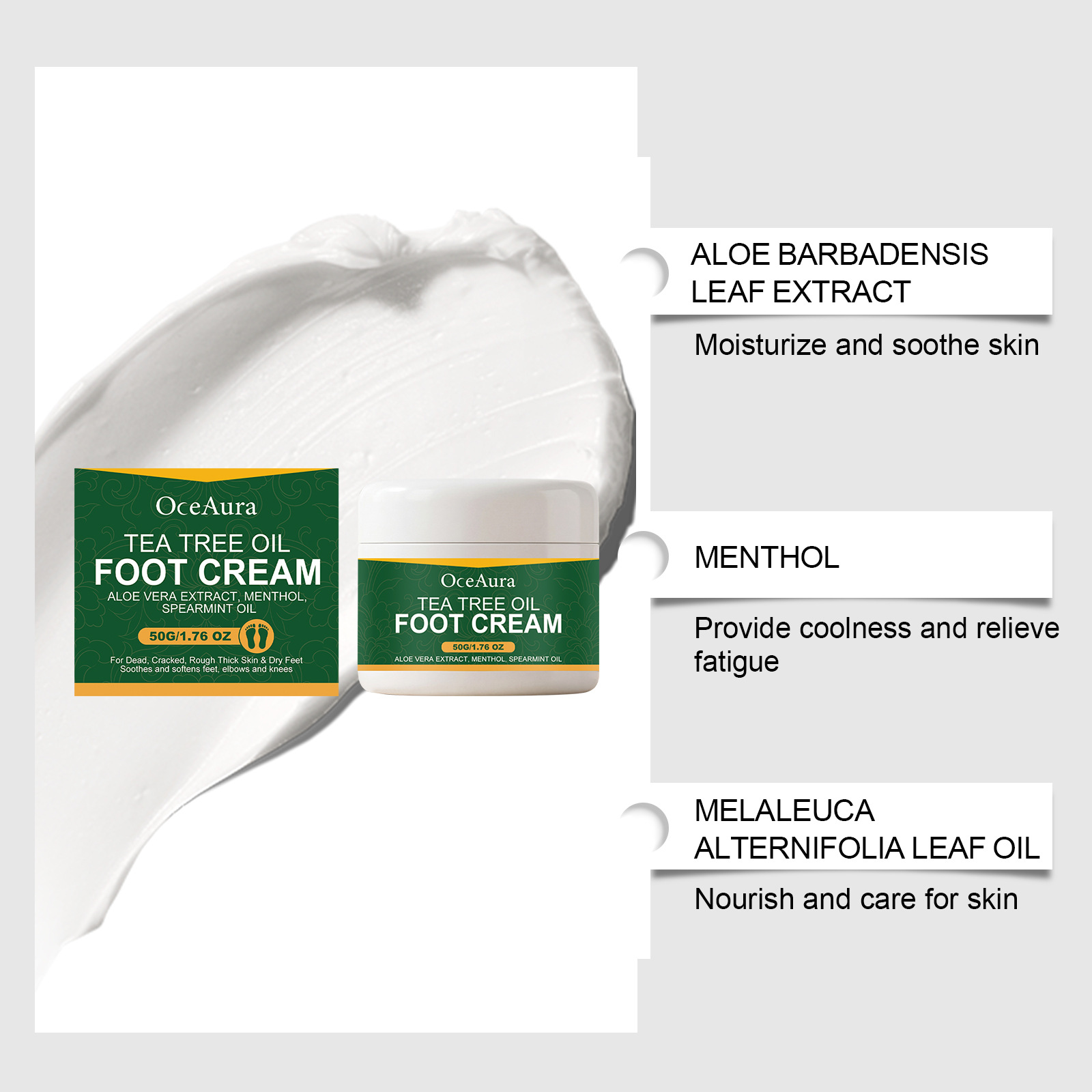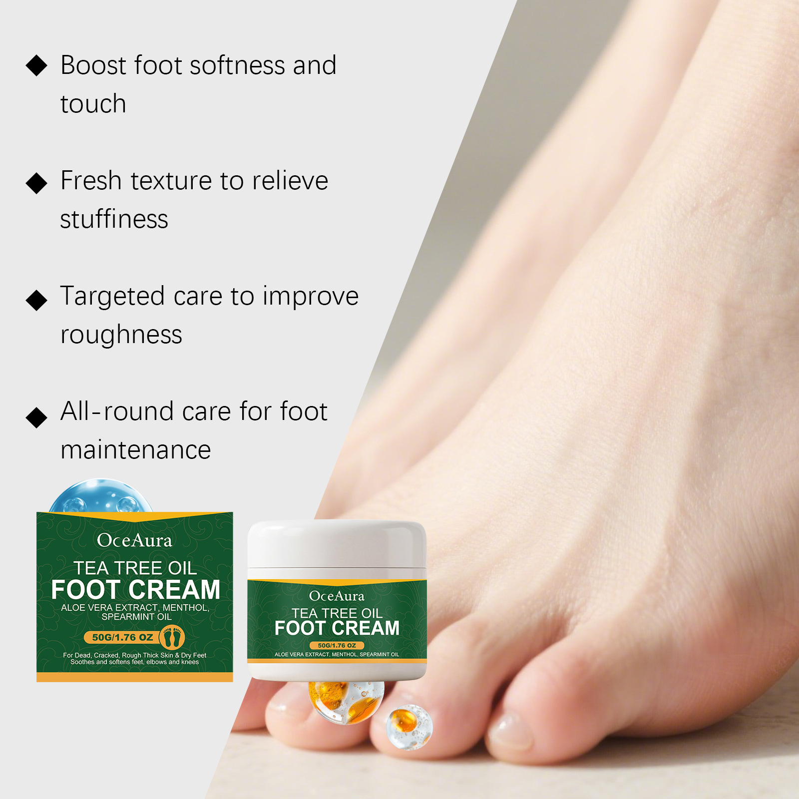 OCEAURA 茶树油足霜 温和成分呵护足部肌肤滋润舒适日常便捷足霜