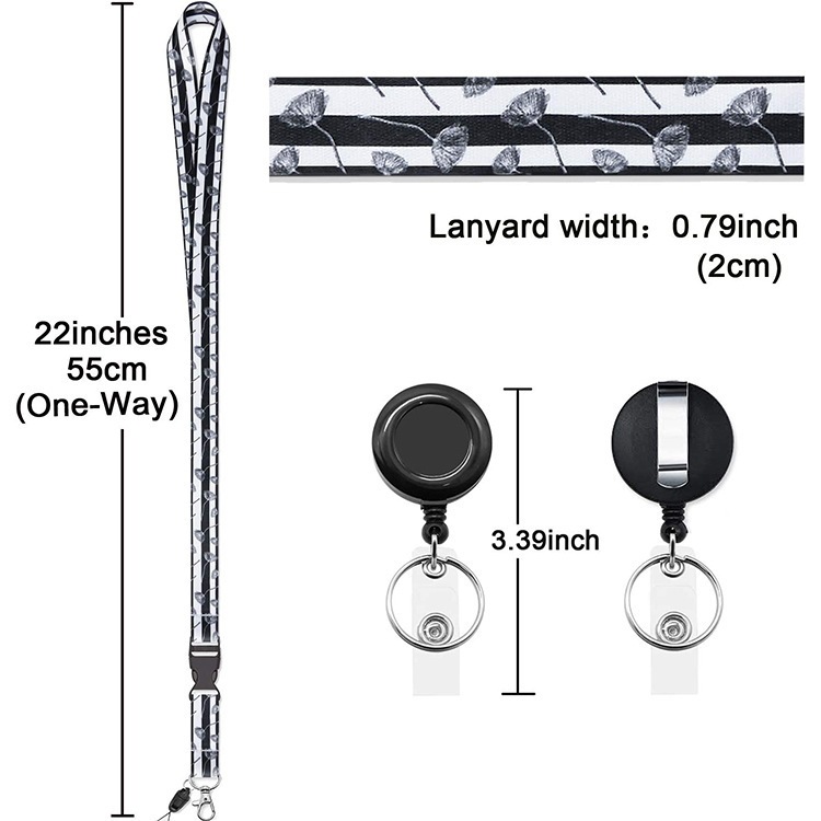 工厂热销黑白色易拉得挂绳 可伸缩带插扣可拆卸转印挂绳
