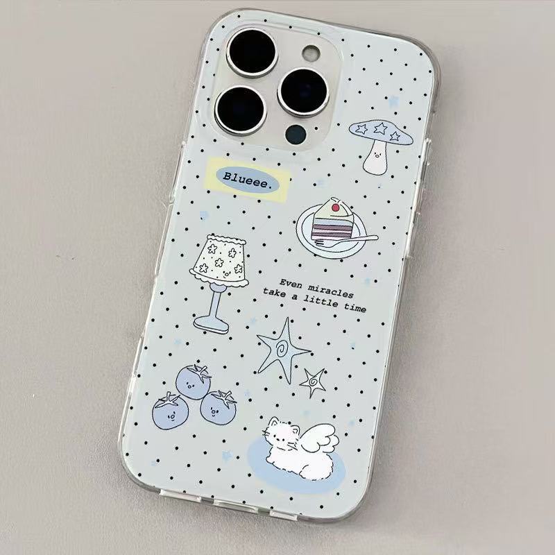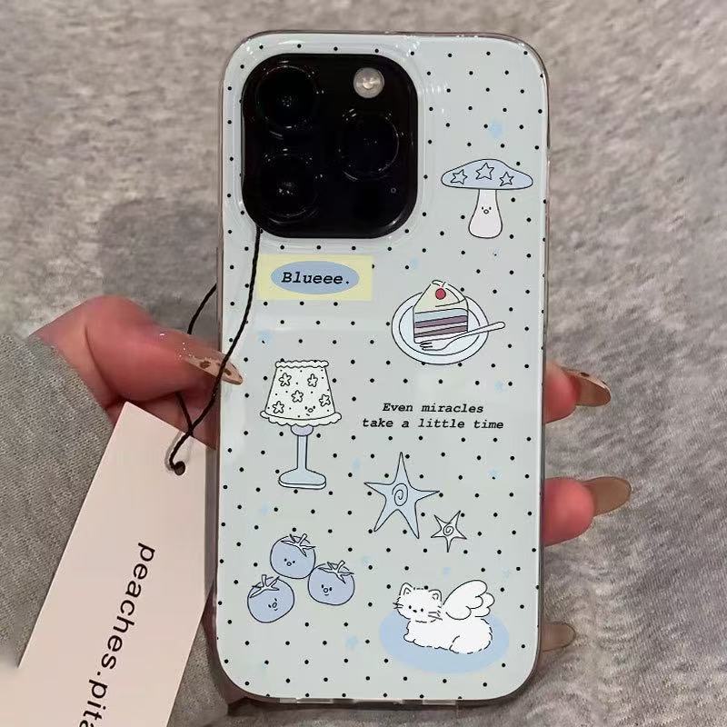 波点天使猫IMD白底壳适用苹果16手机壳iPhone17外贸专供15/14/13
