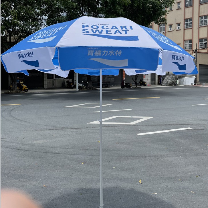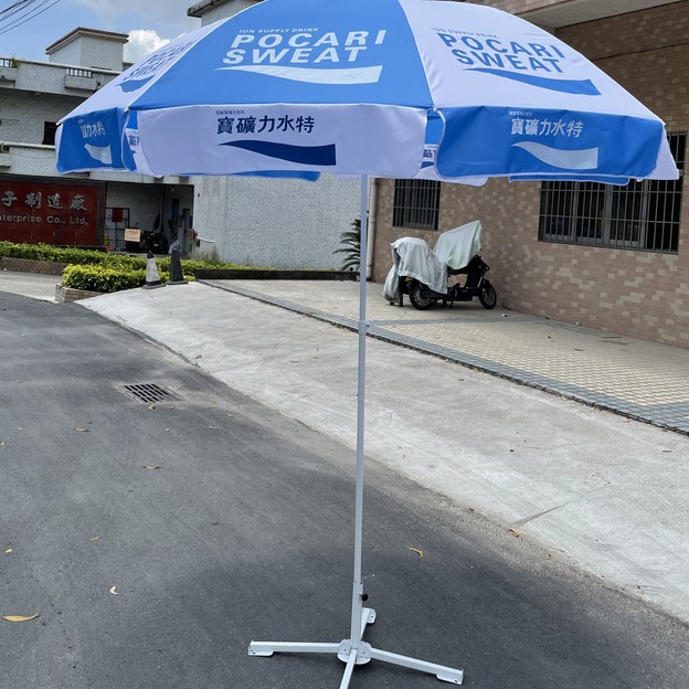 深圳太阳伞厂家宝矿力水饮料广告太阳伞印LOGO户外伞钢架中柱海滩