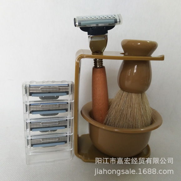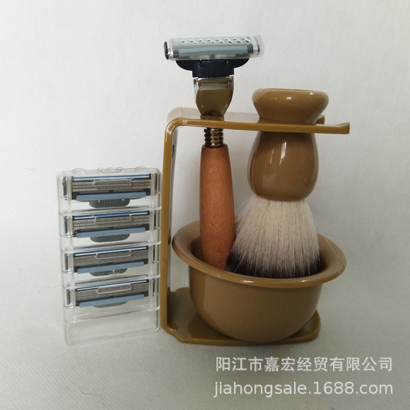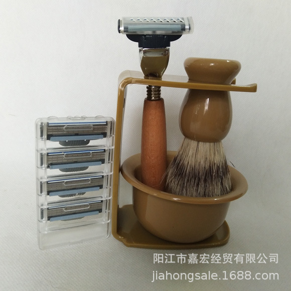 全木色支架装08款卡口式三层刀头刮胡刮脸用品工具组套 剃须套装