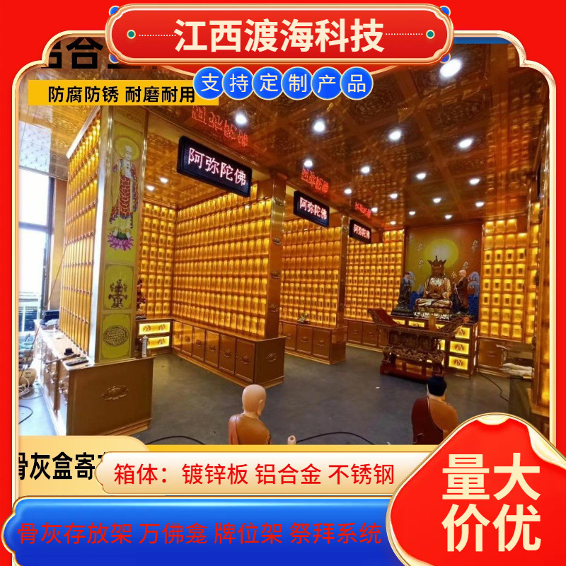 主营产品:骨灰存放架,骨灰盒寄存架,福寿架,万佛龛,牌位架,殡仪馆祭拜系统,寺院智能化管理系统、龙骨吊顶、智能骨灰寄存架