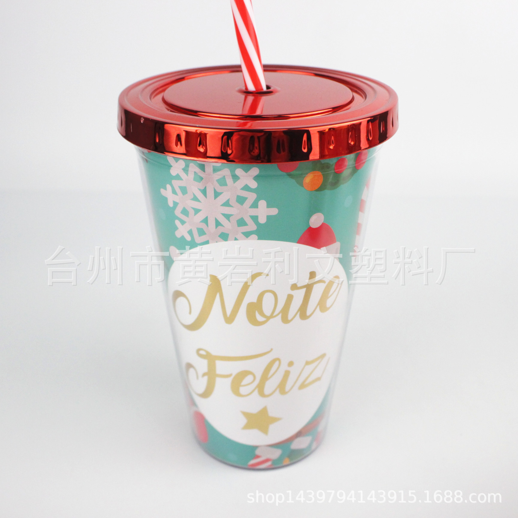 爆款2019冬日圣诞雪人节日杯 PS双层吸管杯 双层塑料奶茶饮水杯