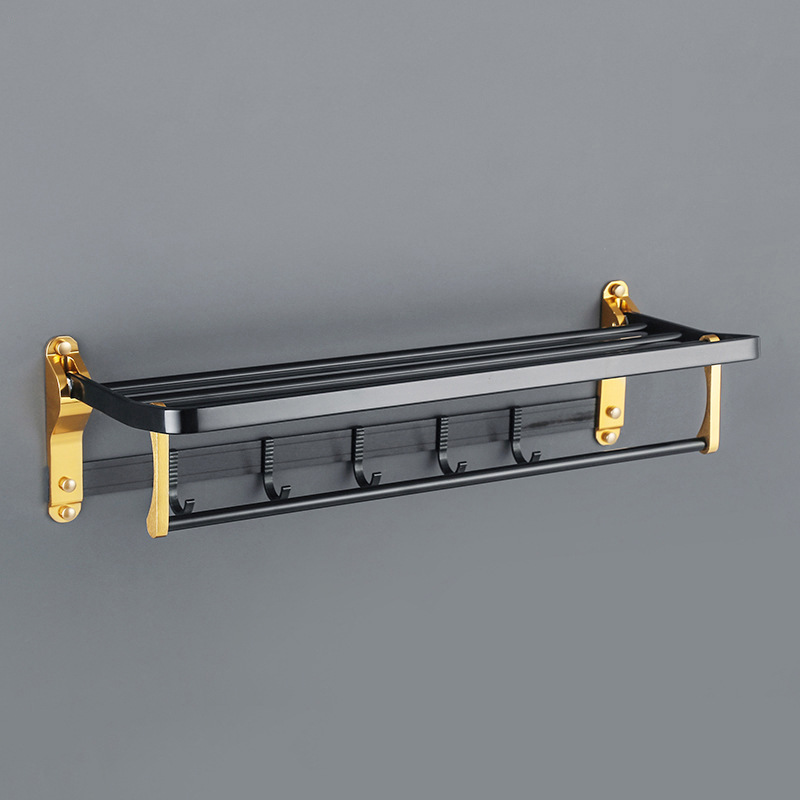 一体轻奢两用折叠枪灰色浴巾架浴室壁挂式毛巾架免打孔卫生间套装