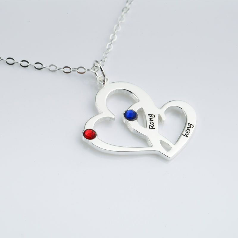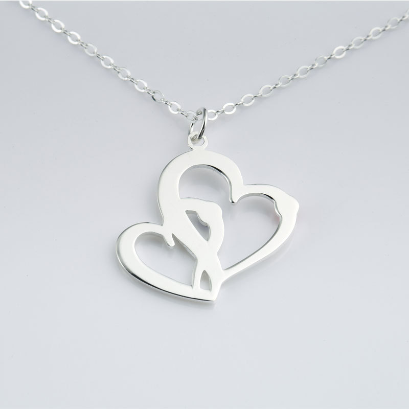 字母雕刻异形爱心项链定 制s925爱心纯银饰情侣款个性项链饰品