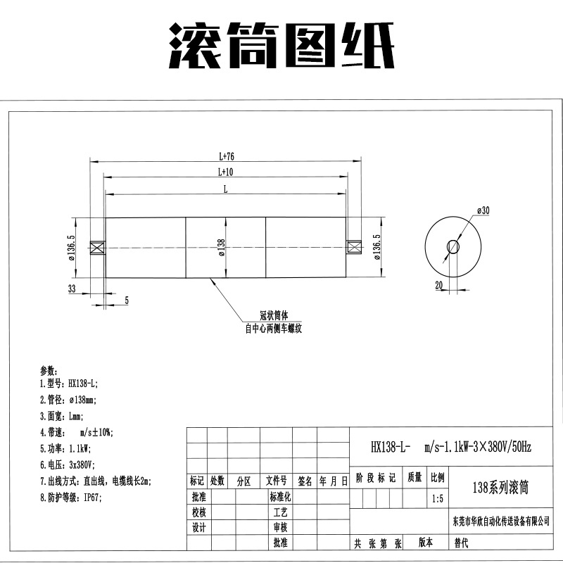 输送带流水线电动滚筒直流138电动滚筒分拣物流运输顶电动辊筒