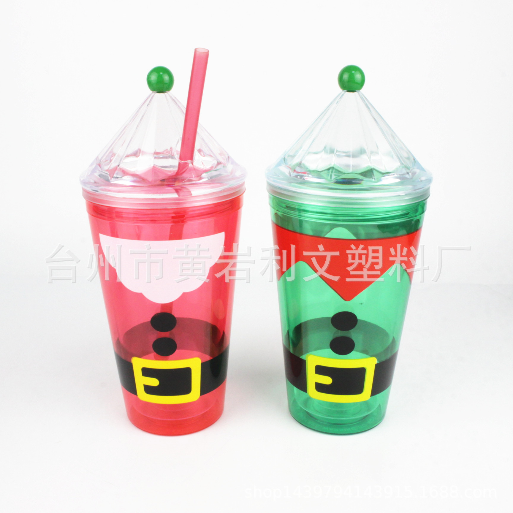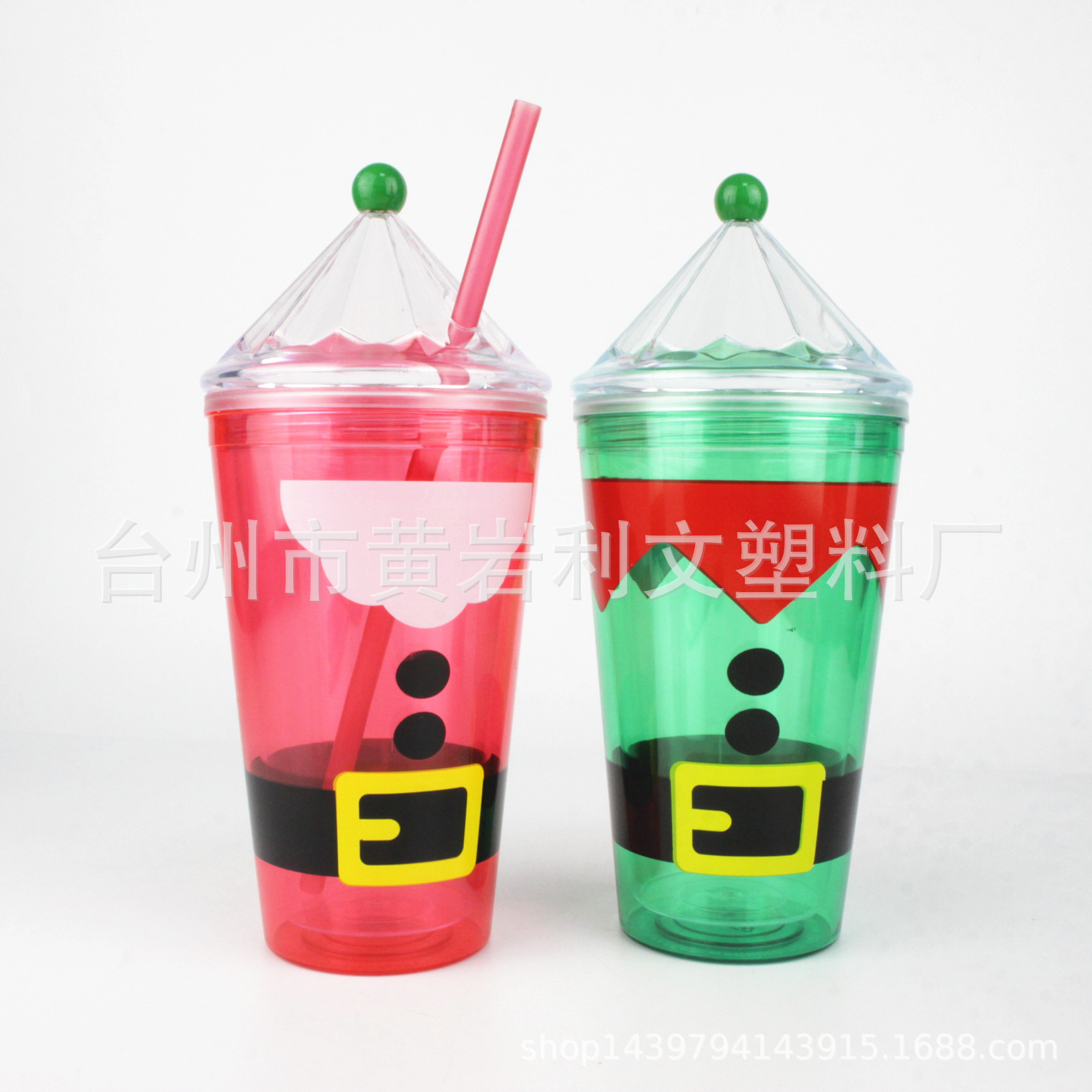450ML圣诞盖吸管杯 16OZ双层塑料杯 PS杯 圣诞节节日礼品杯
