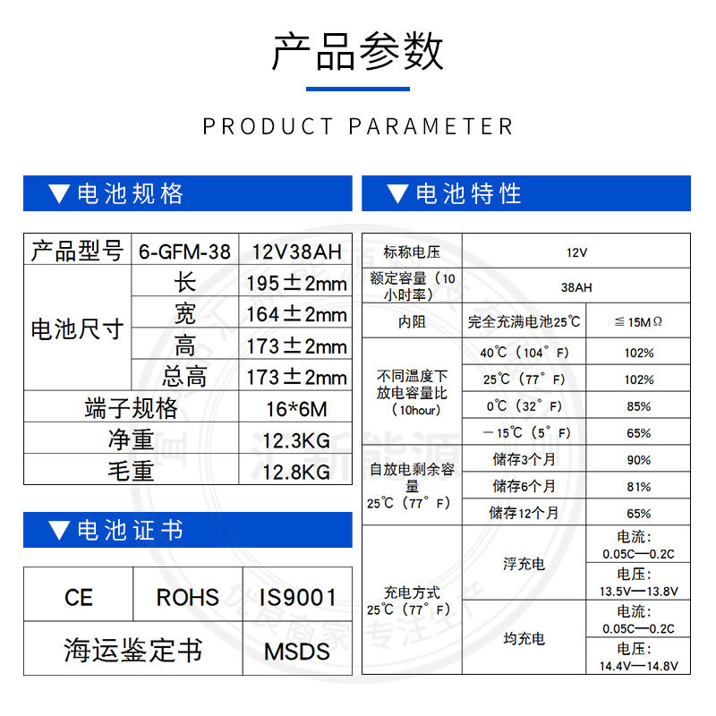 现货12V38AH铅酸蓄电池铅酸太阳能路灯蓄电池阀控式密封铅酸电池