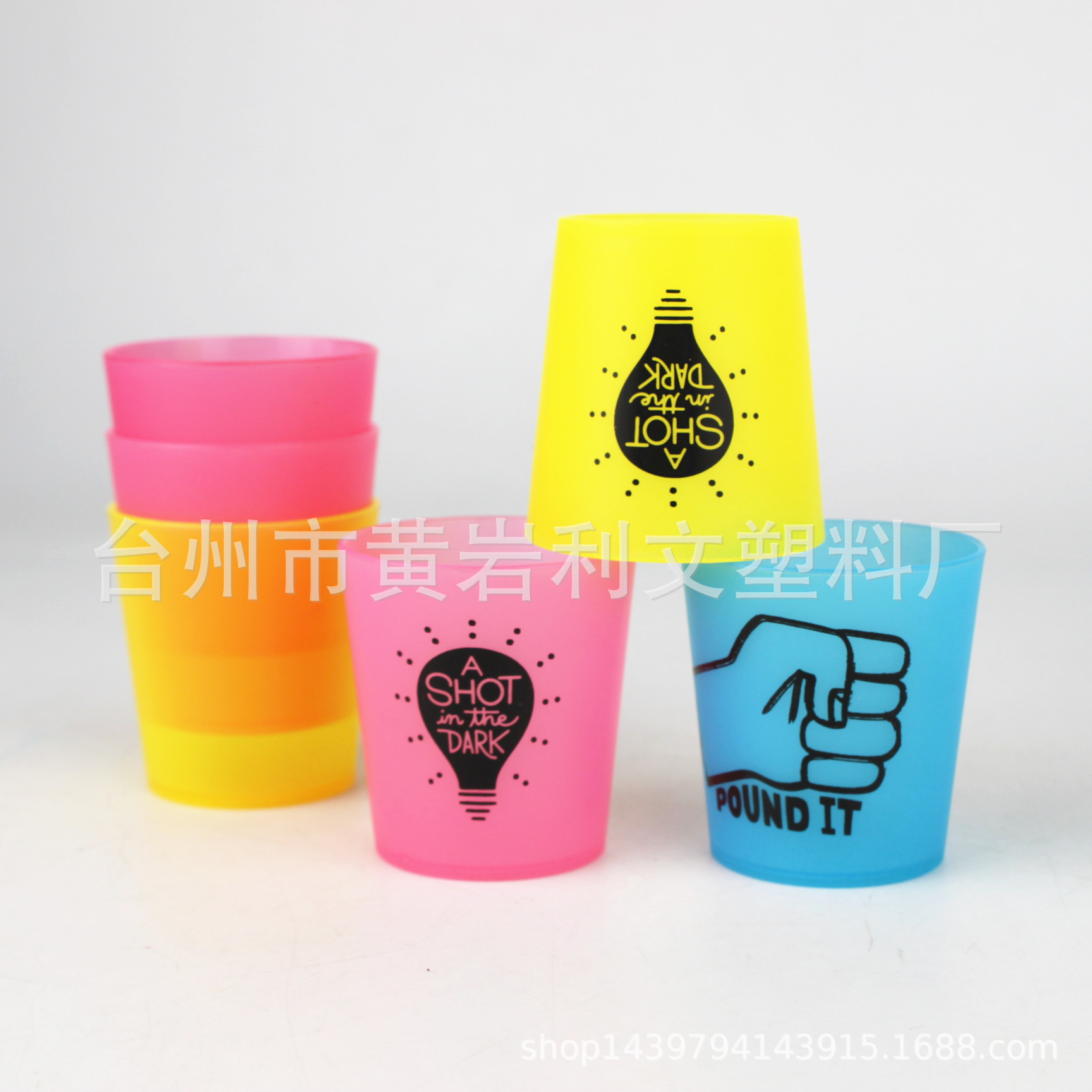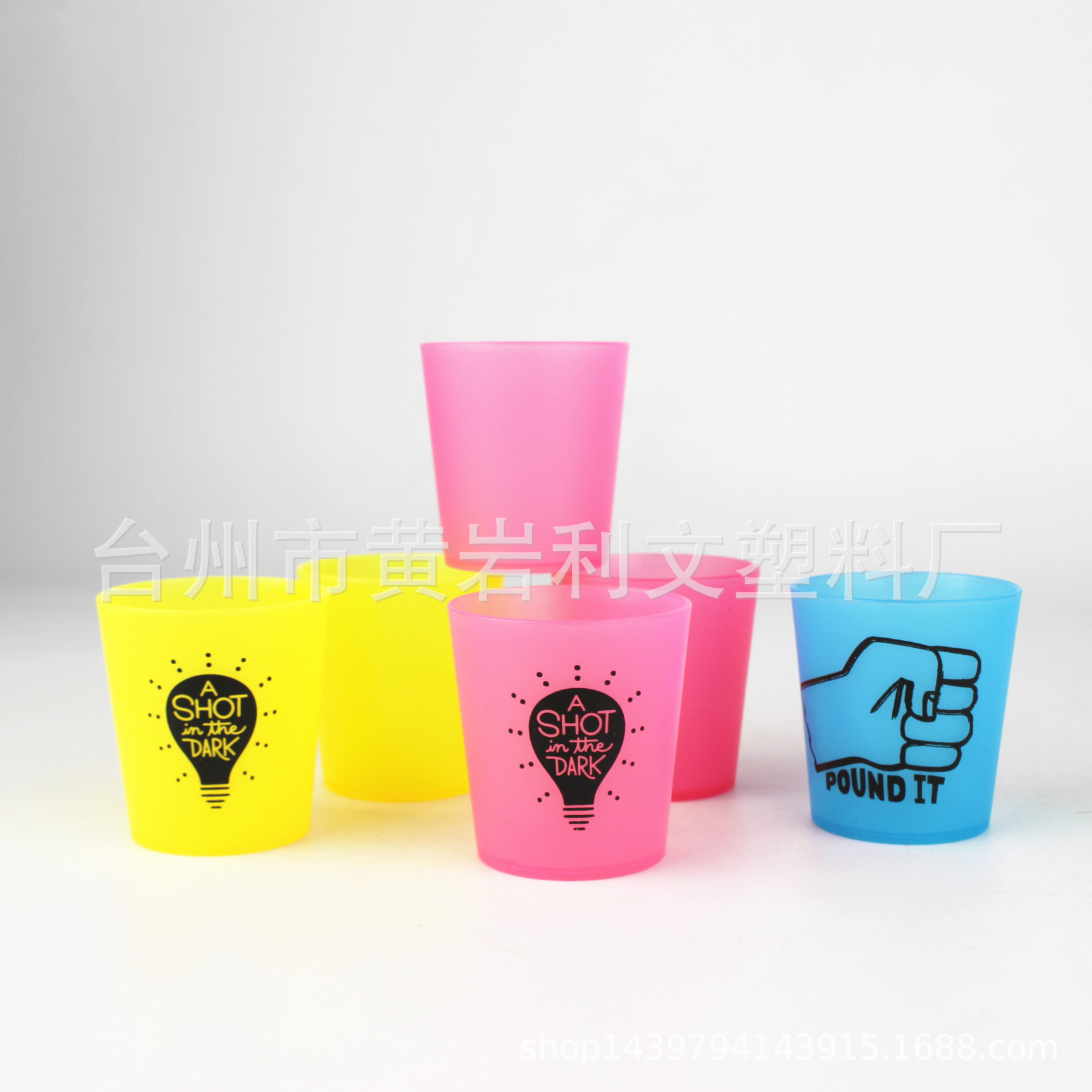 爆款LOGO制50ML塑料磨砂酒杯 pp试饮杯 荧光试饮果汁杯