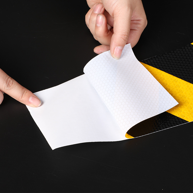 晶格夜间交通安全防撞反光贴黑黄红白菱形反光膜黑黄警示胶带地贴