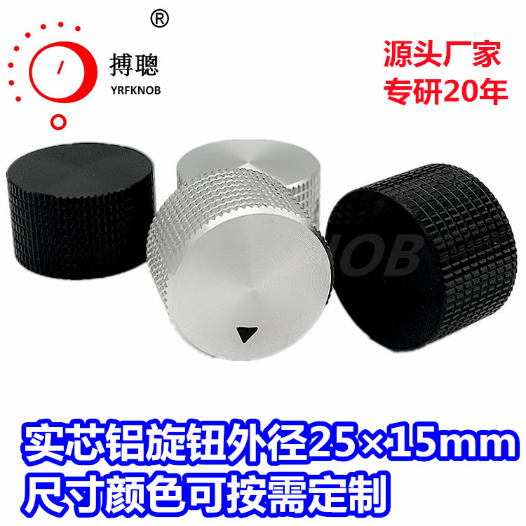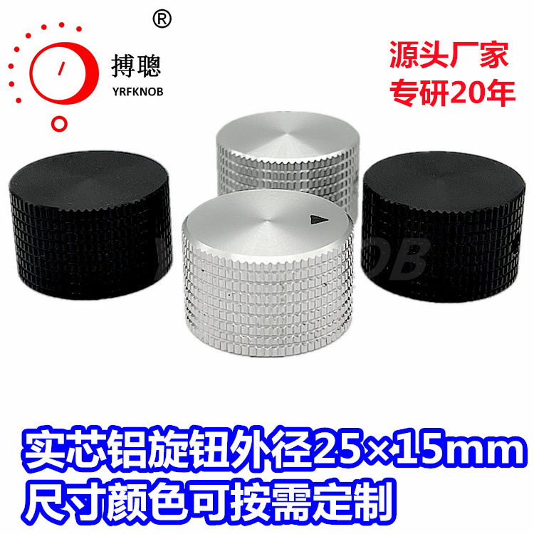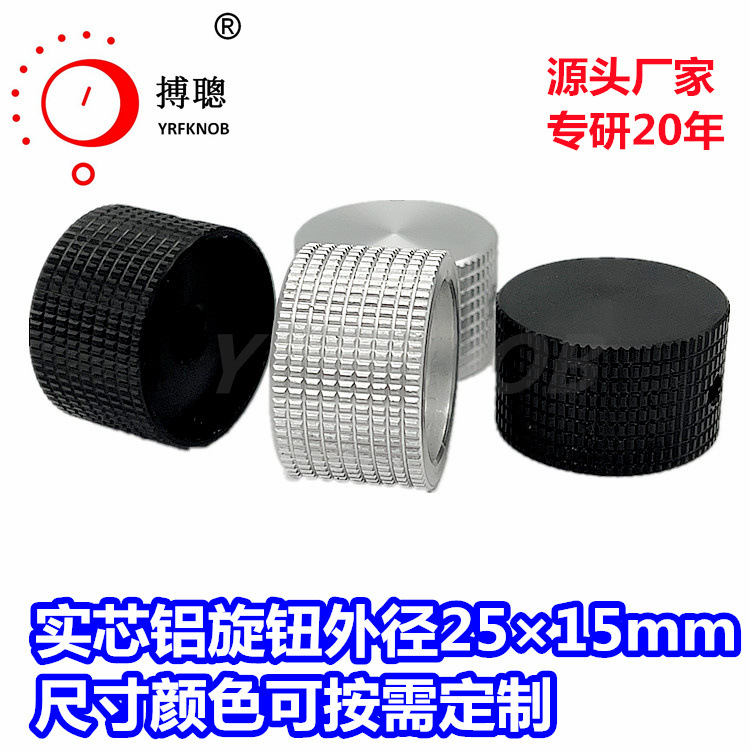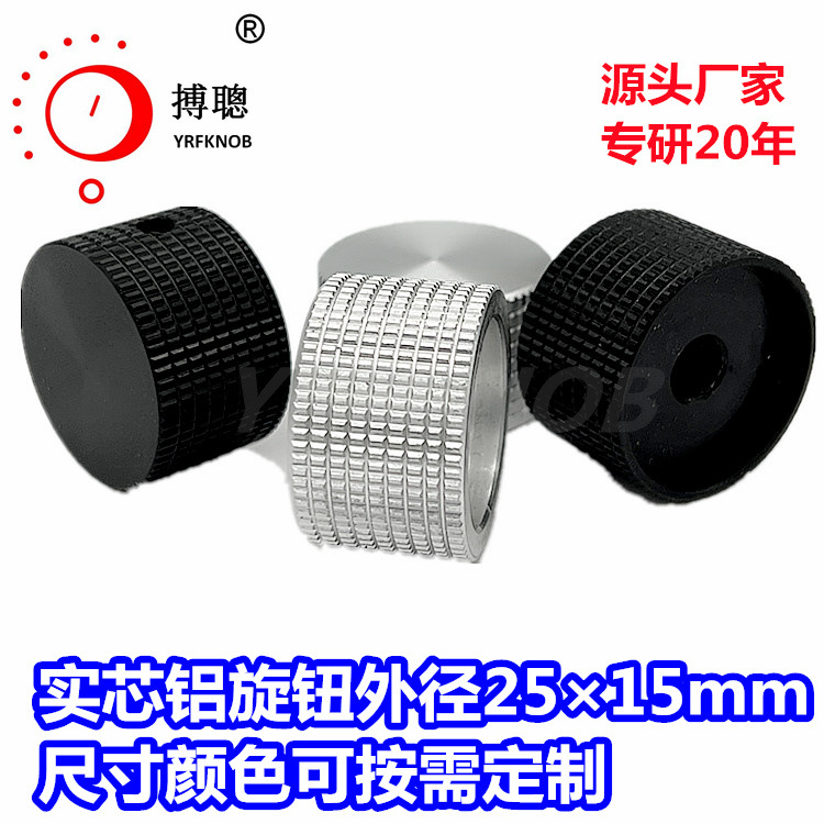 YRFKNOB品牌铝合金旋钮25×15黑色轮胎方格滚花电子电路板旋钮帽