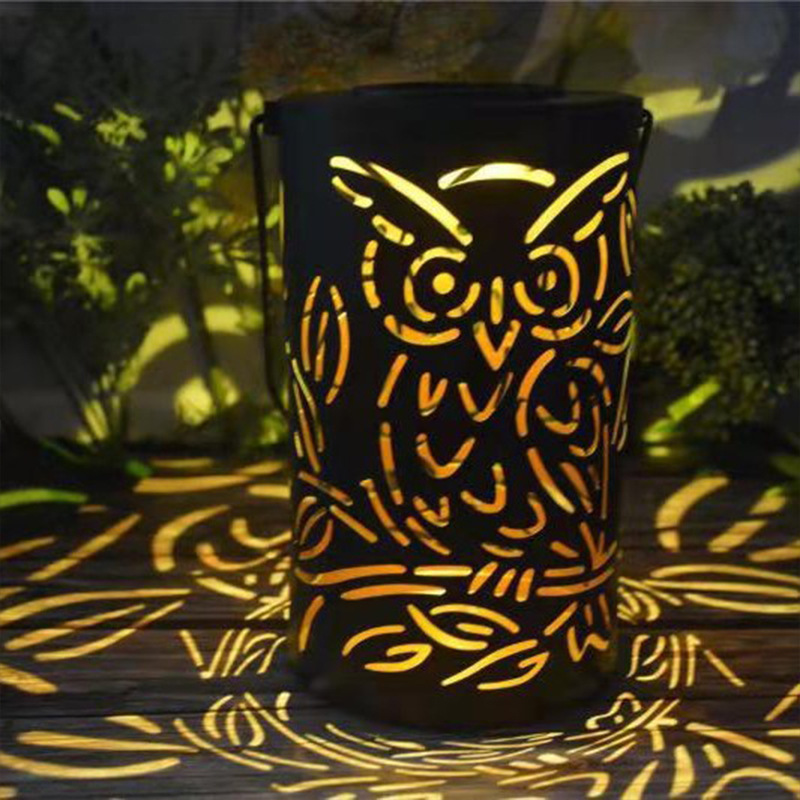 亚马逊爆款厂家供应太阳能铁艺猫头鹰镂空手提灯户外花园灯装饰灯