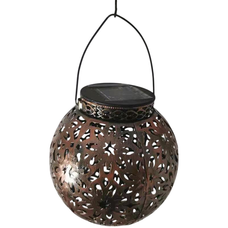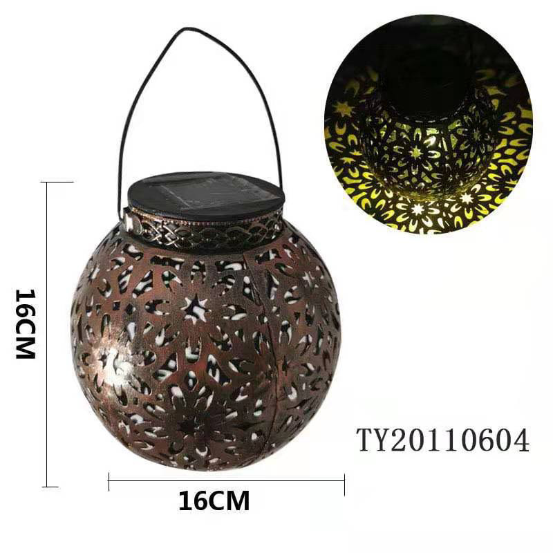 跨境新品太阳能铁艺镂空 灯笼球形LED户外庭院装饰手提式投影挂灯