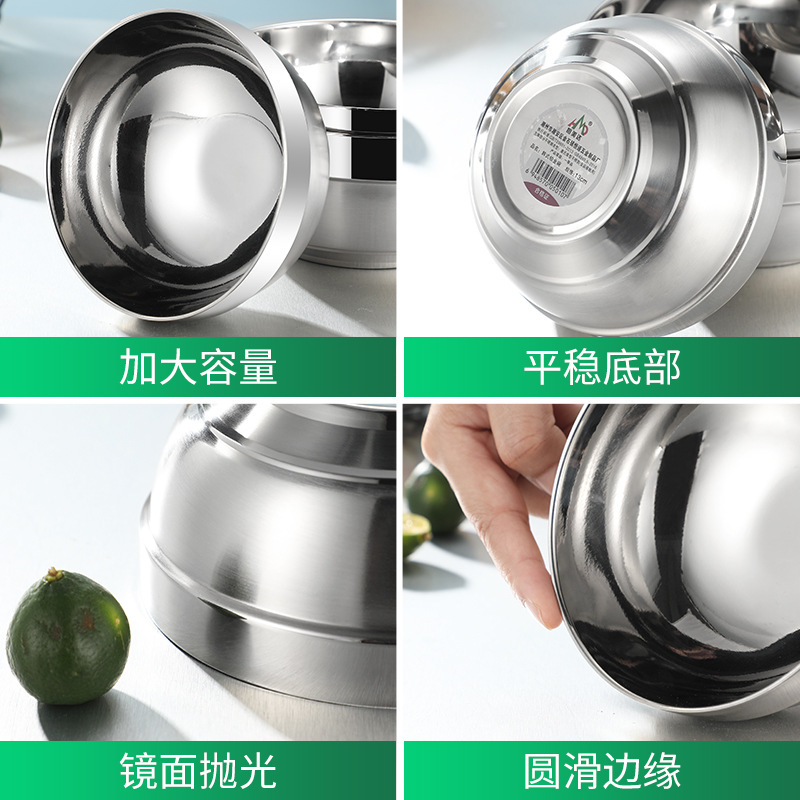 贴牌加厚不锈钢碗双层隔热汤碗铂金碗食堂学校碗儿童饭碗餐具中式
