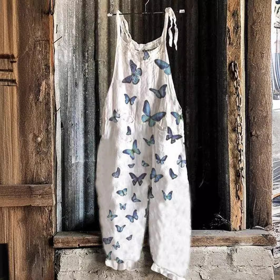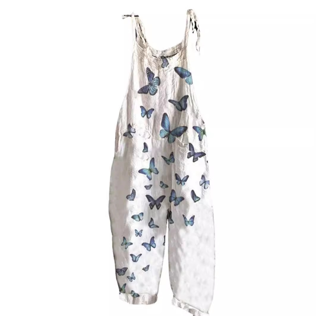 2025跨境女装亚马逊欧美夏季新款甜美小清新印花复古阔腿女连体裤