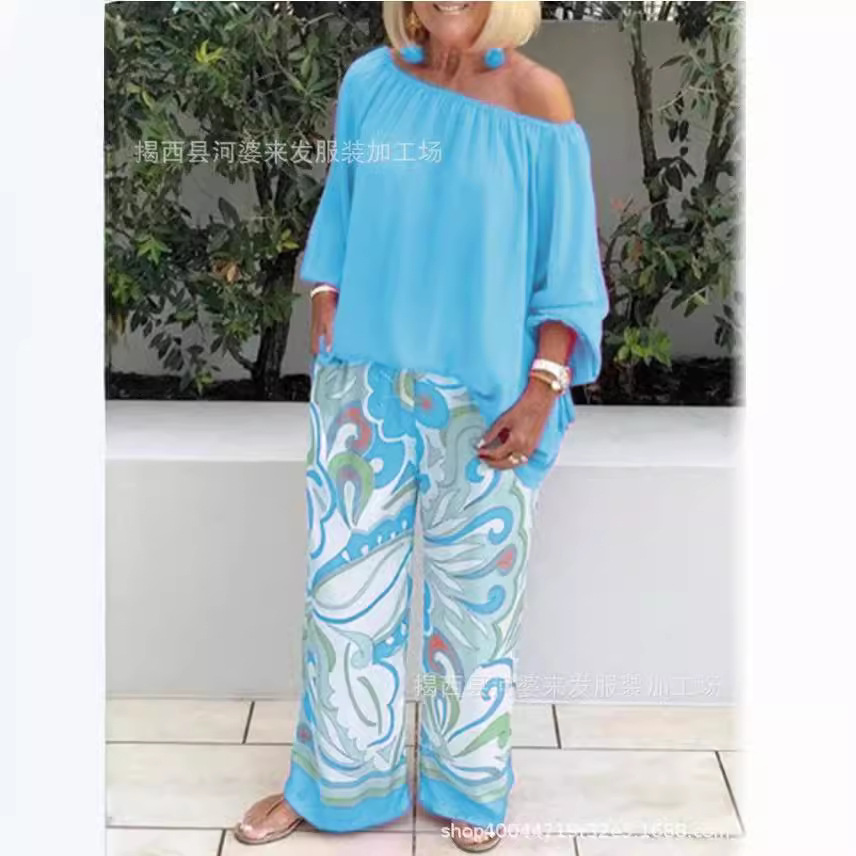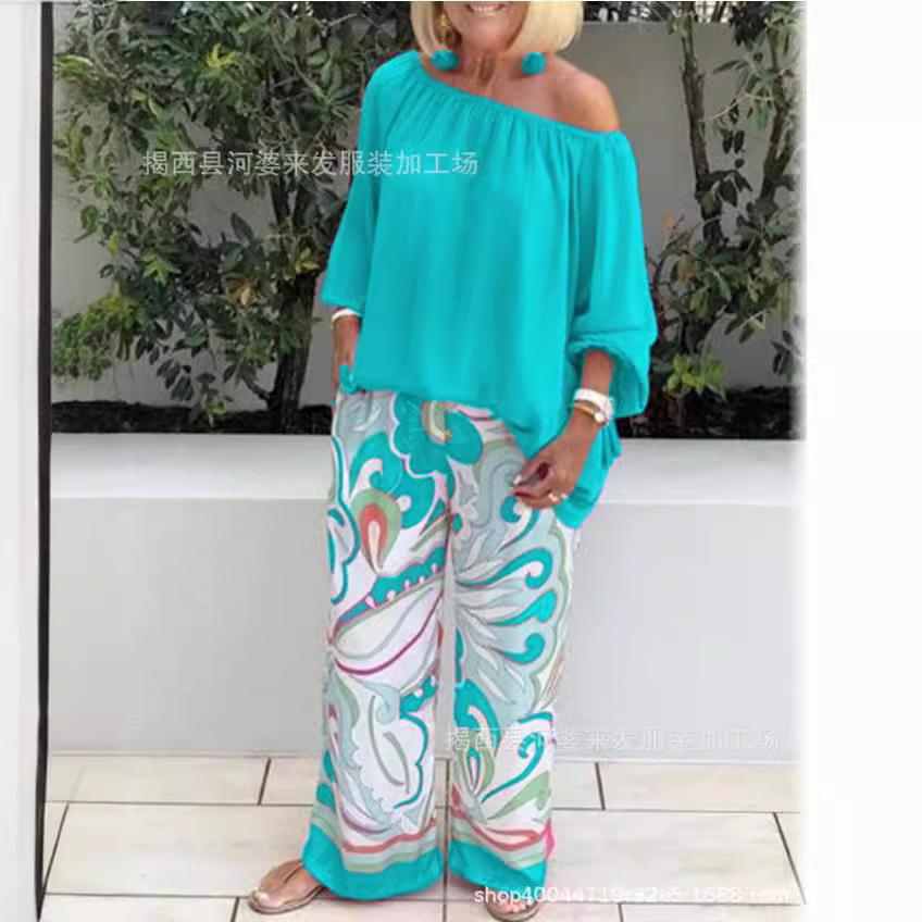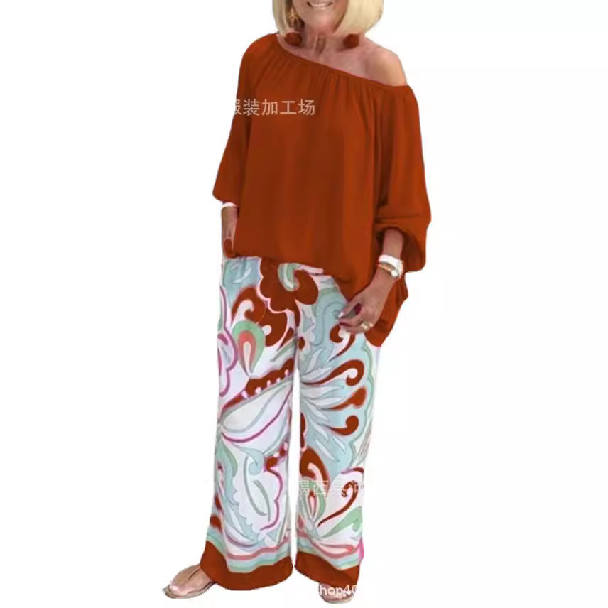 2025跨境亚马逊速卖通欧美新款春夏大码女装时尚宽松两件套 现货