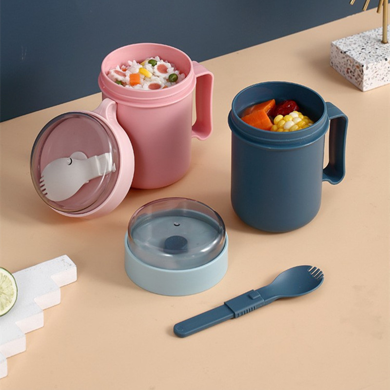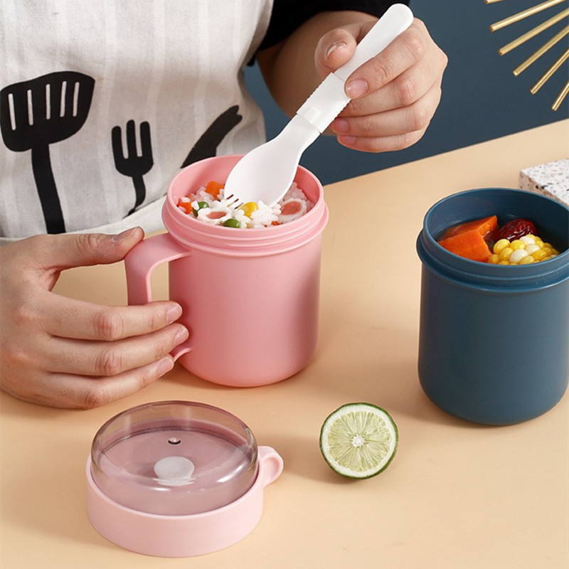 早餐杯微波炉加热密封塑料带盖便捷餐具汤罐麦片杯上班族厂家批发