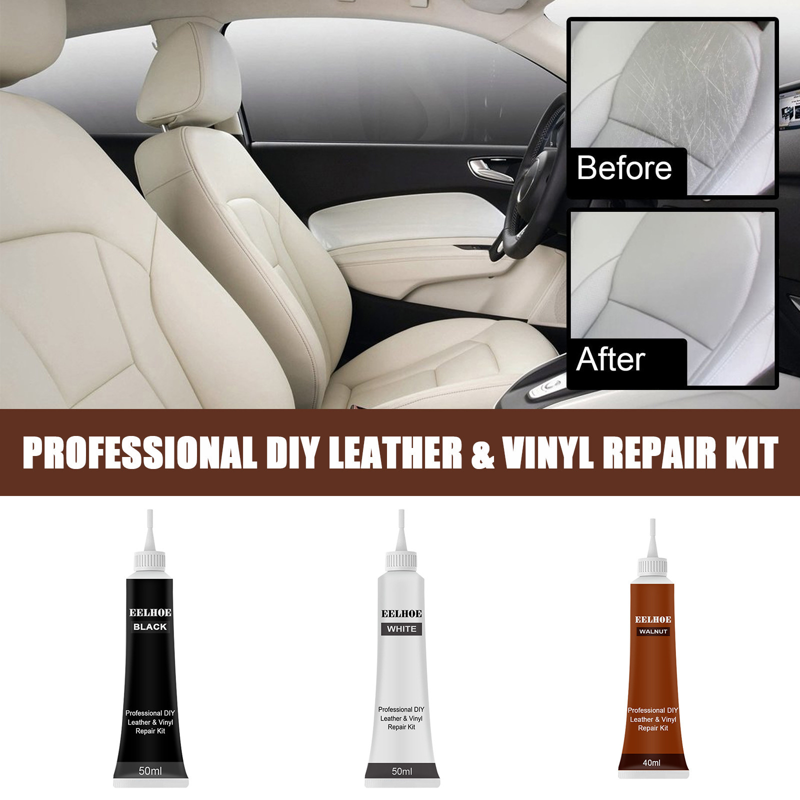 EELHOE 汽车皮革增色膏(白色)皮包皮革护理增亮沙发皮制增色膏