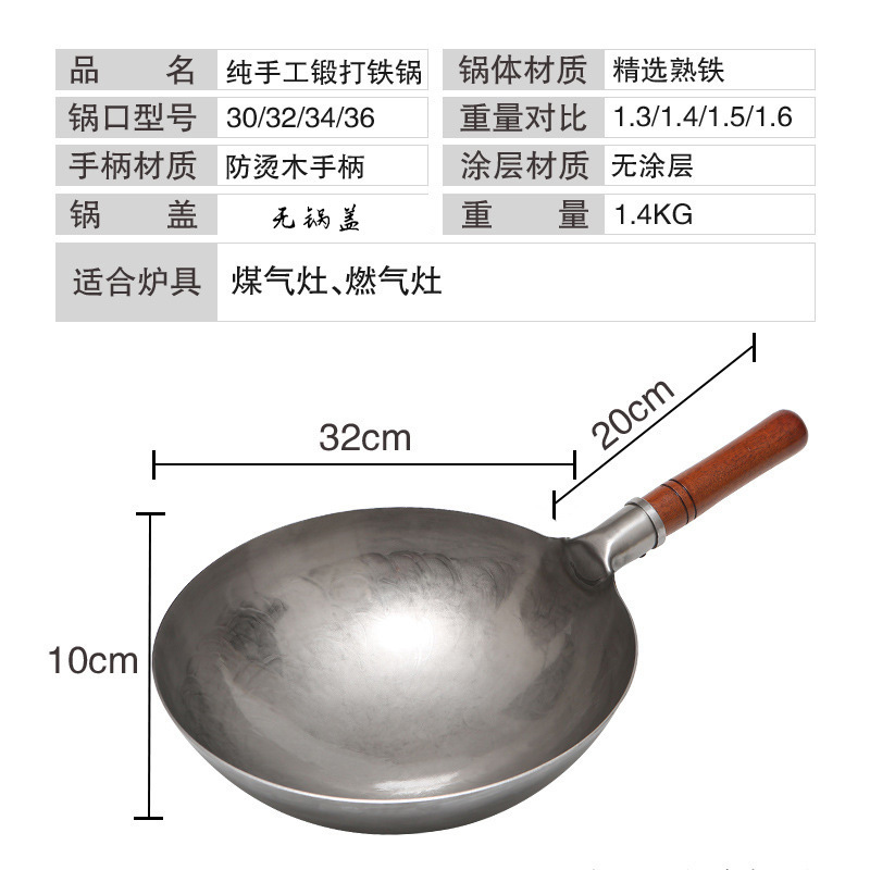 | 颜色 | 烤蓝开锅1.8厚重加耳 | 颜色 | 古法锻打30cm【无耳】 |