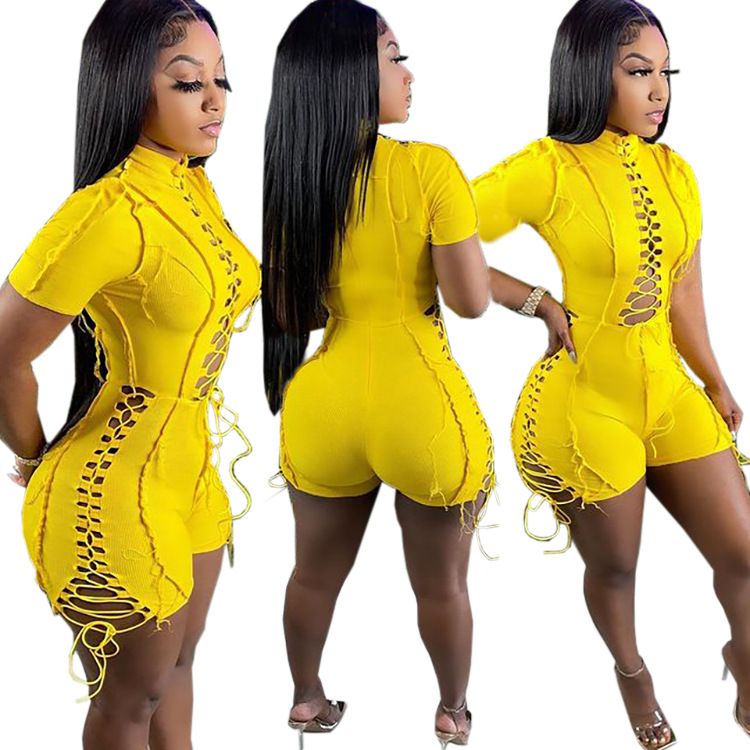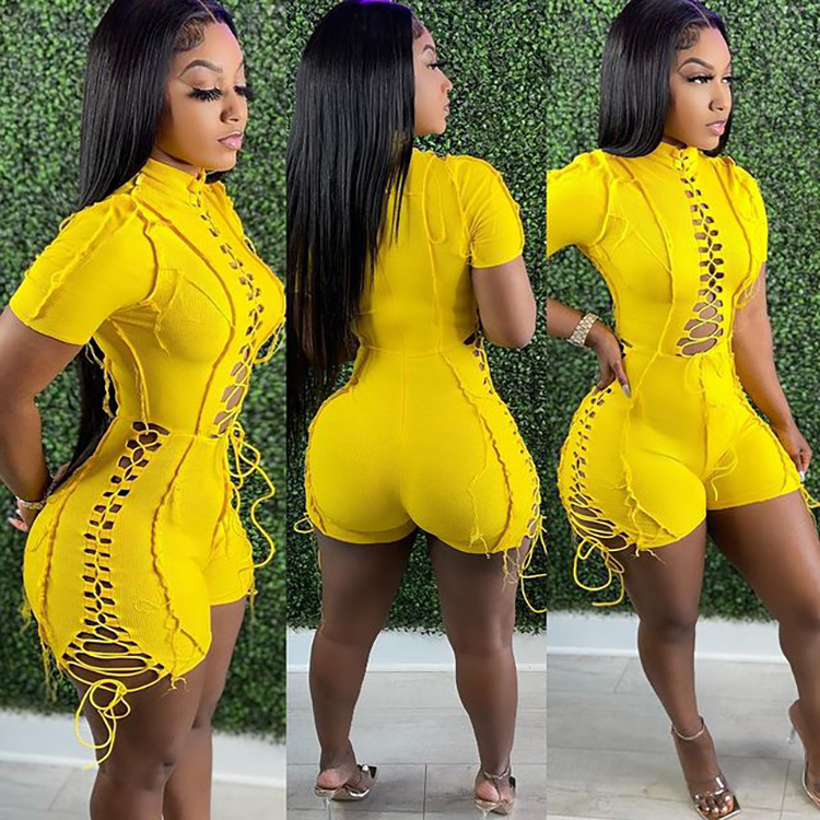 2021夏季热推 亚马逊外贸女装 欧美性感纯色系绳短袖连体短裤