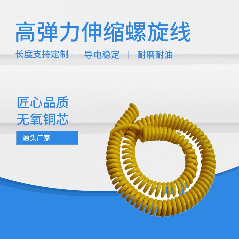 定制加工纯铜PU国标弹簧线 高弹力伸缩电线车载航空线螺旋电源线