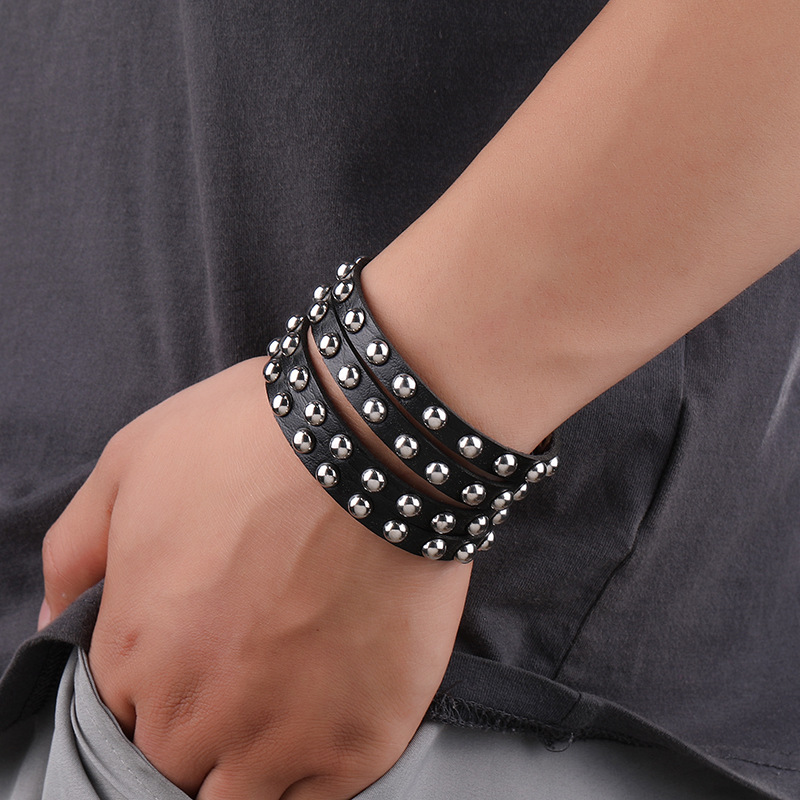 欧美跨境新款时尚麻花皮革酷感手环可批发朋克摇滚风皮革手环