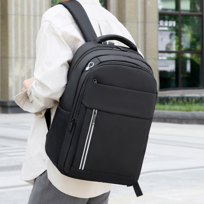 跨境男士双肩包印LOGO大容量背包商务通勤带反光条电脑包厂家批发