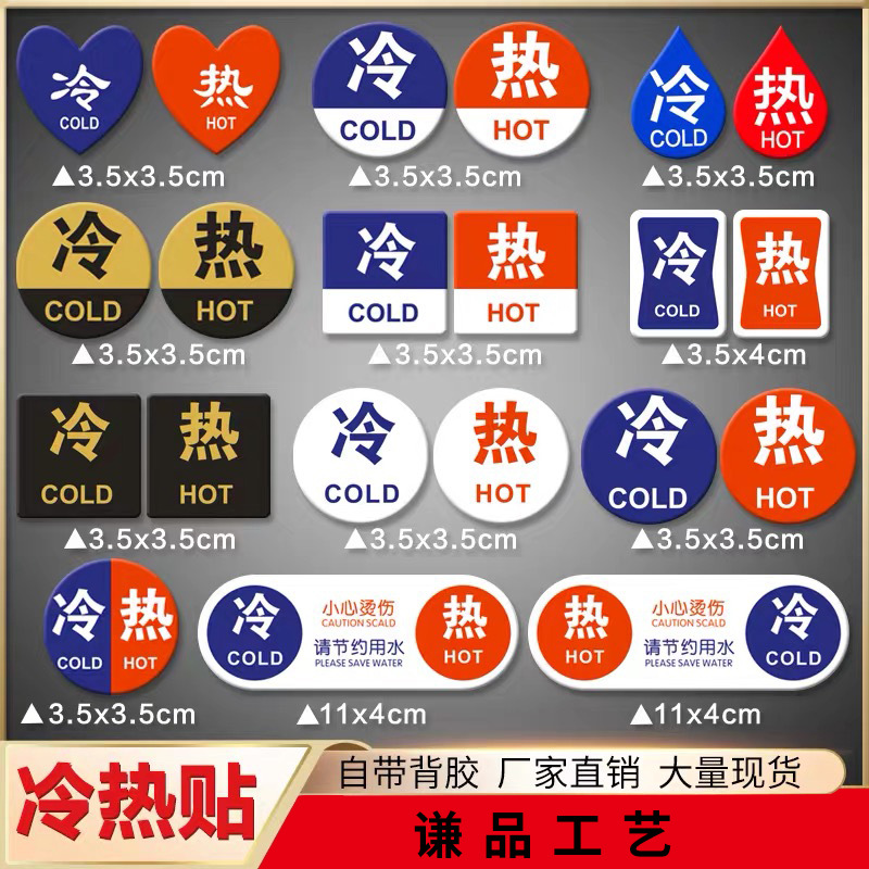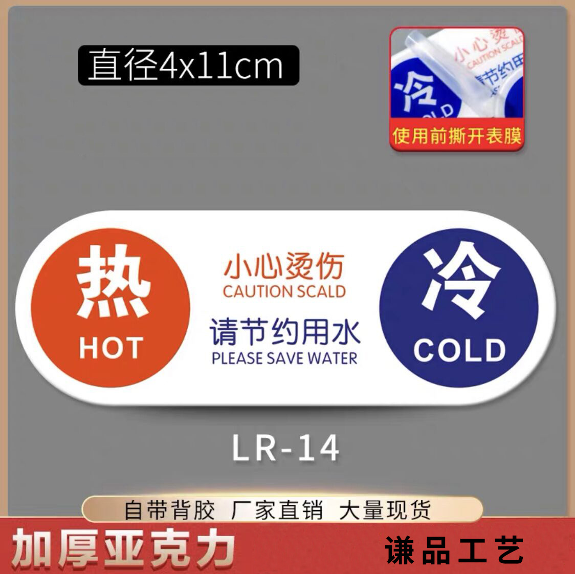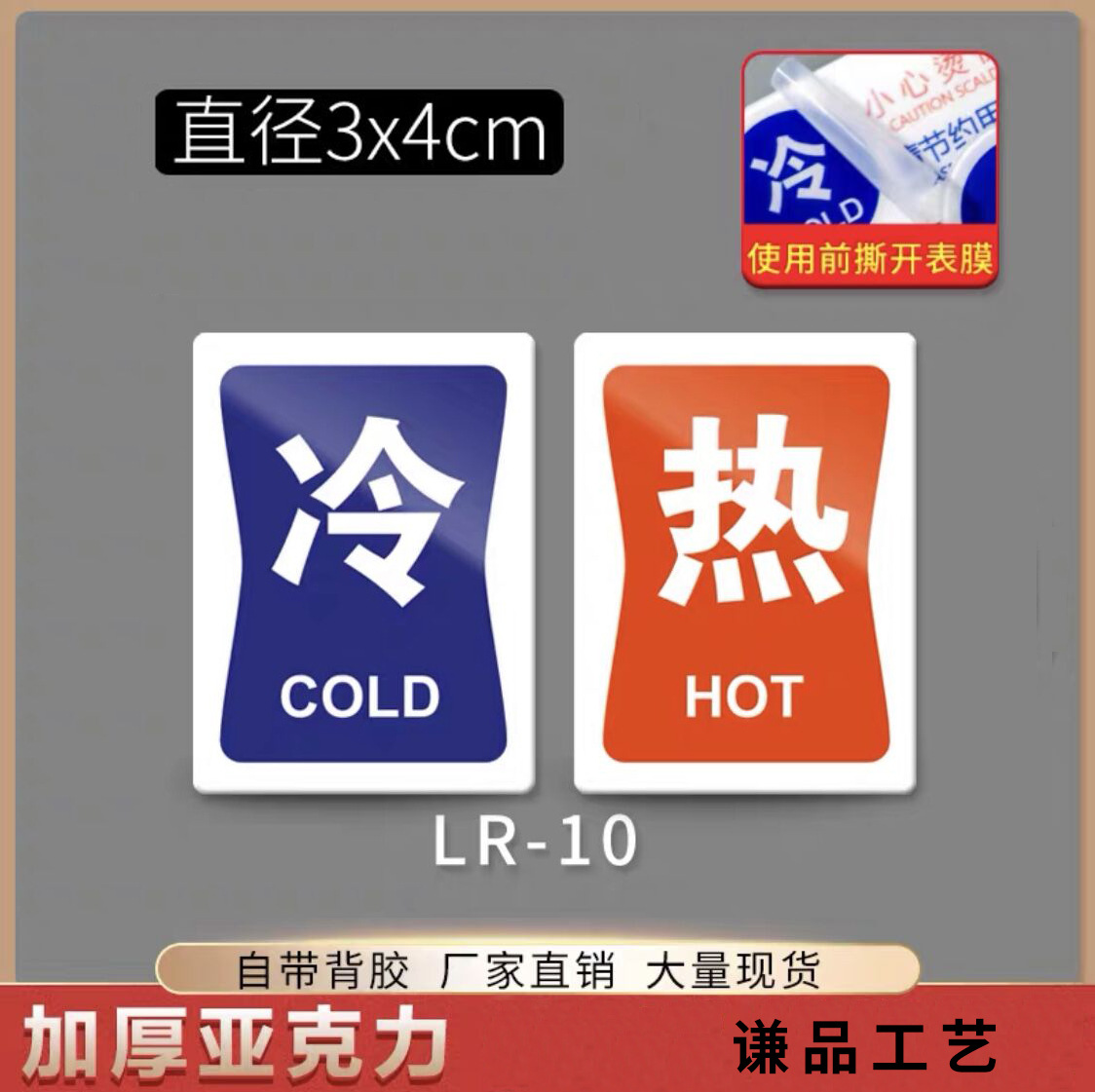 亚克力标牌 冷热水标识酒店公司家用洗手间水龙头冷热标识牌