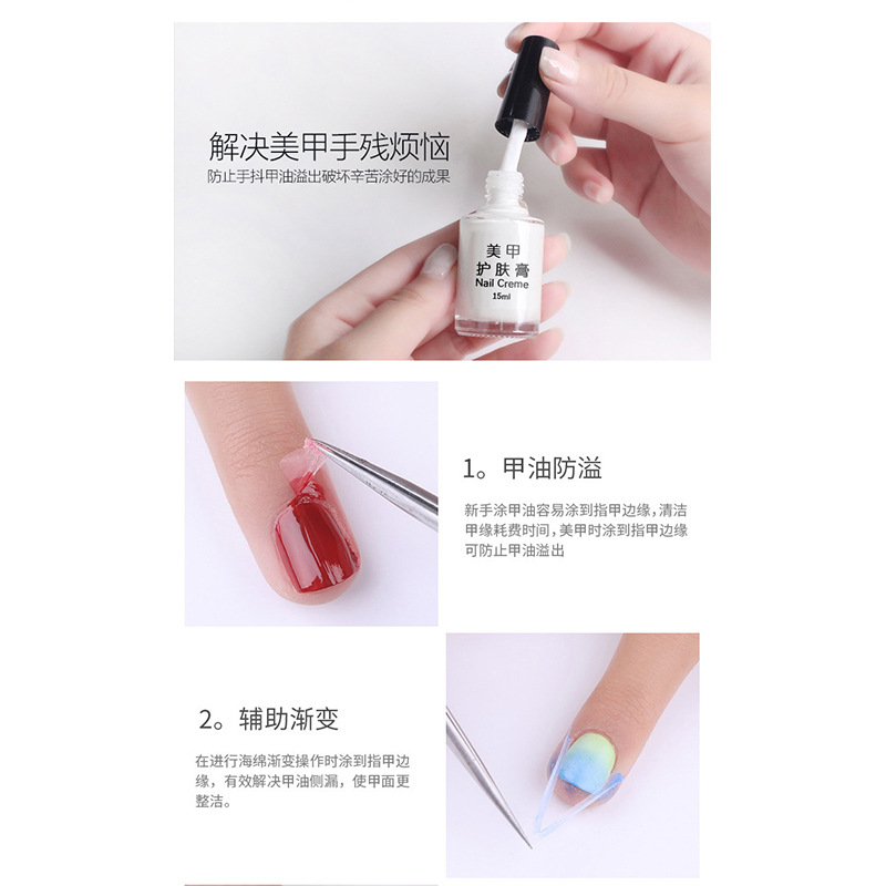 美甲防溢胶指甲油印花油防溢可撕护肤膏粉白色无味厂家直销15ml