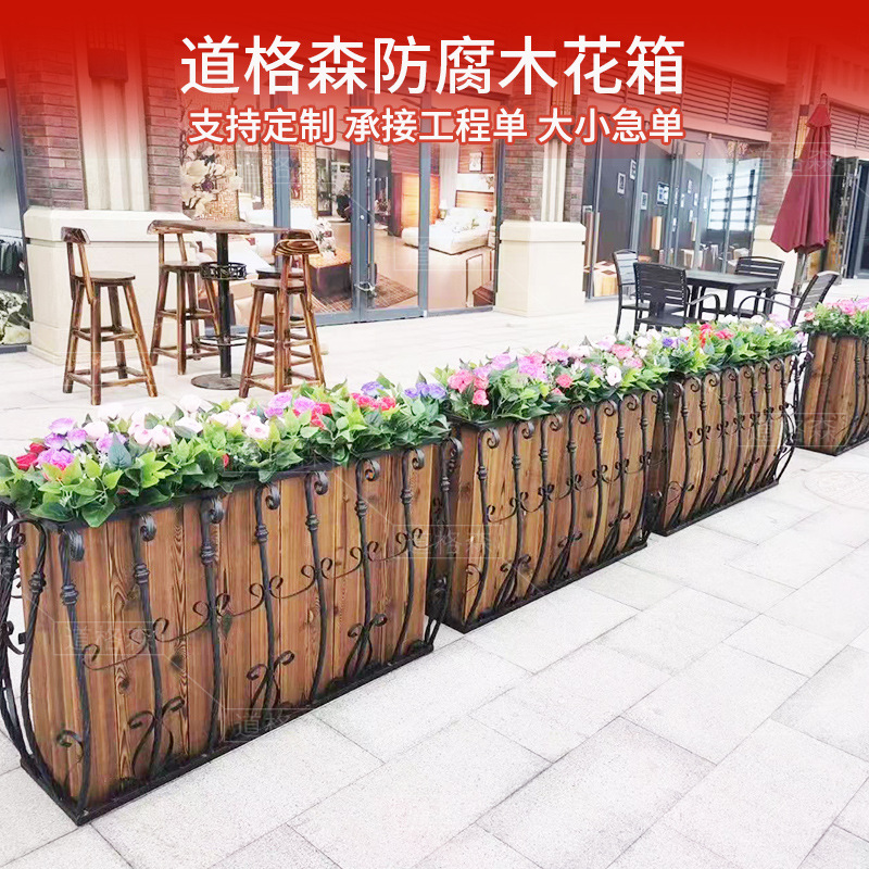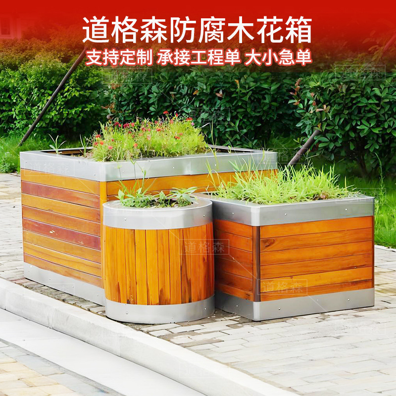 市政园林景观户外花箱成品花箱不锈钢包边花箱防腐木隔离花箱定制