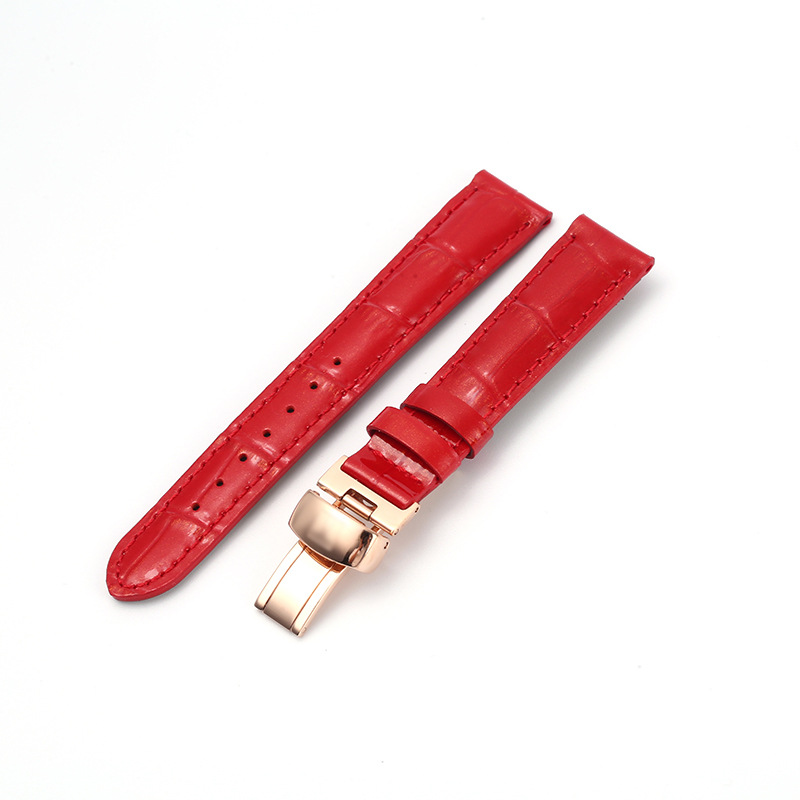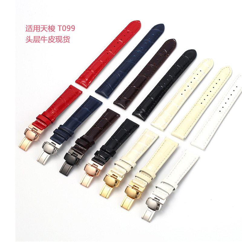 适配T099现货天T梭S女士蝴蝶扣表链16mm多色真皮手表带厂家直销