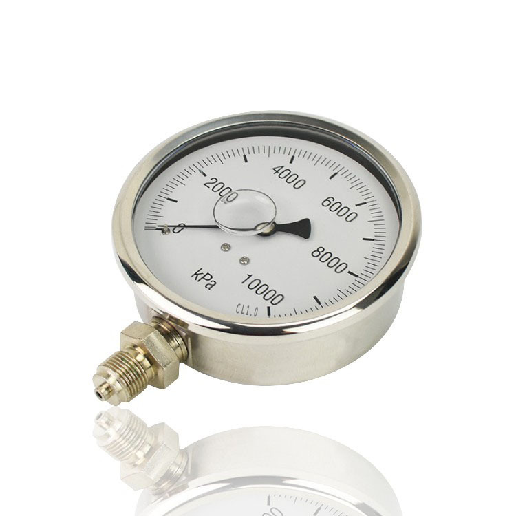 全钢千帕压力表不锈钢304径向充油耐震YN100BF 10000KPA M20*1.5