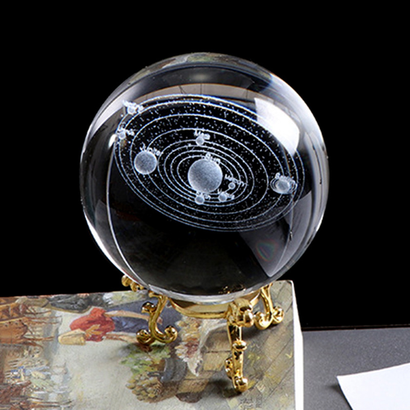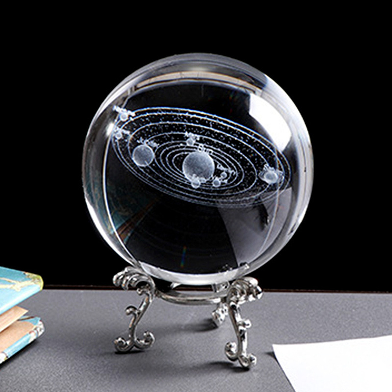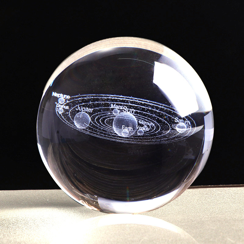 3D激光内雕水晶球摆件太阳系月球土星地球银河宇礼物白水晶水晶石