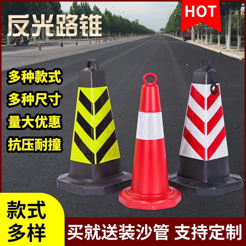 路障橡胶路锥反光锥提环圆锥桶禁止停车路橡胶圆墩雪糕筒路障路锥