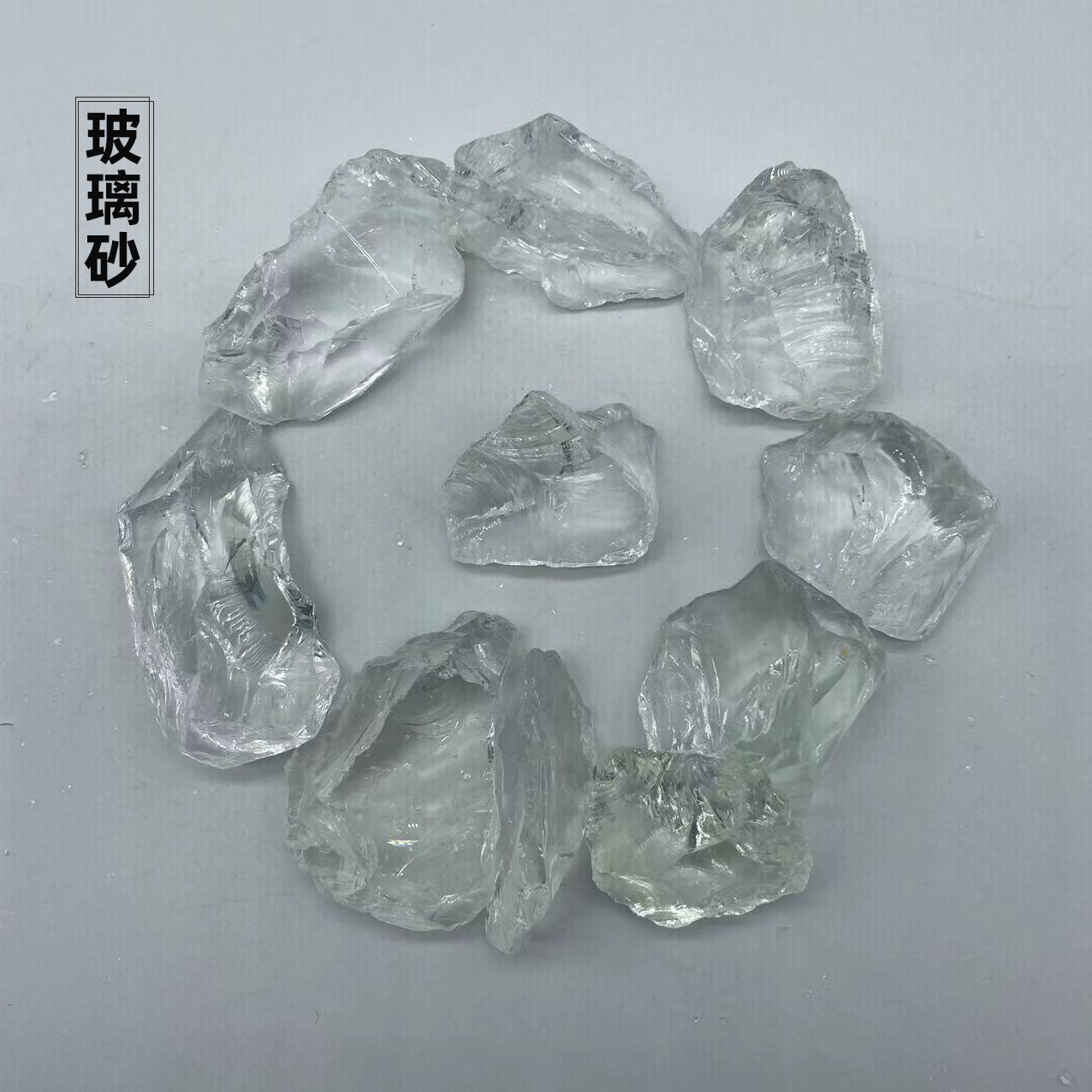 不规则白色透明玻璃砂水族造景用玻璃块水磨骨料玻璃砂