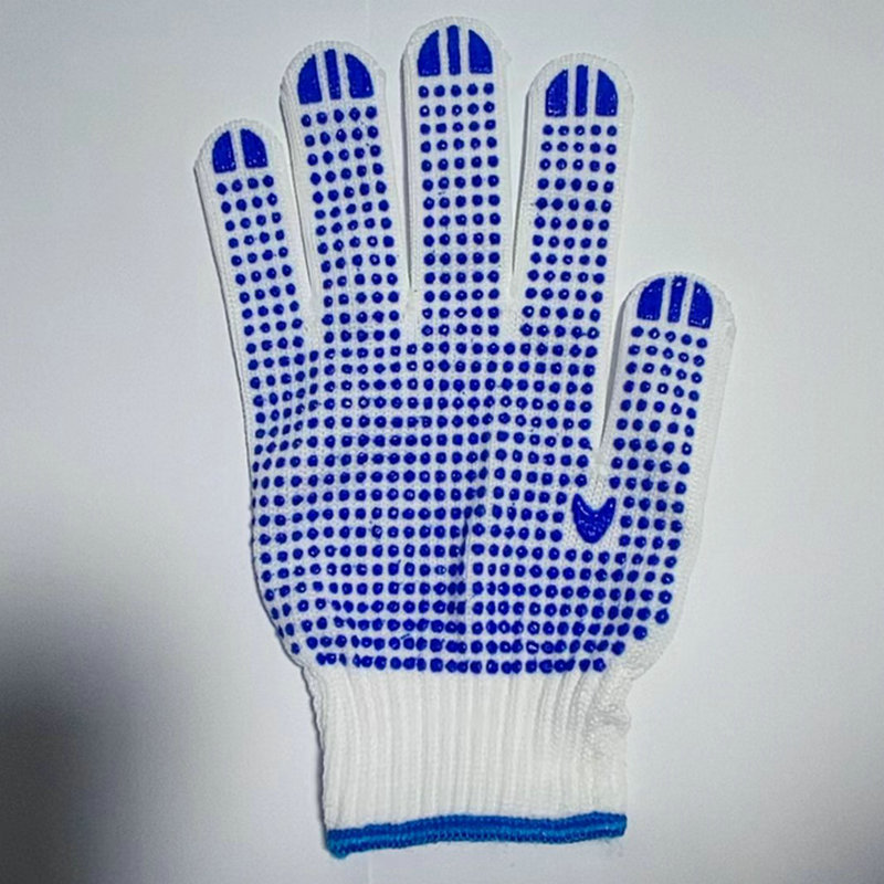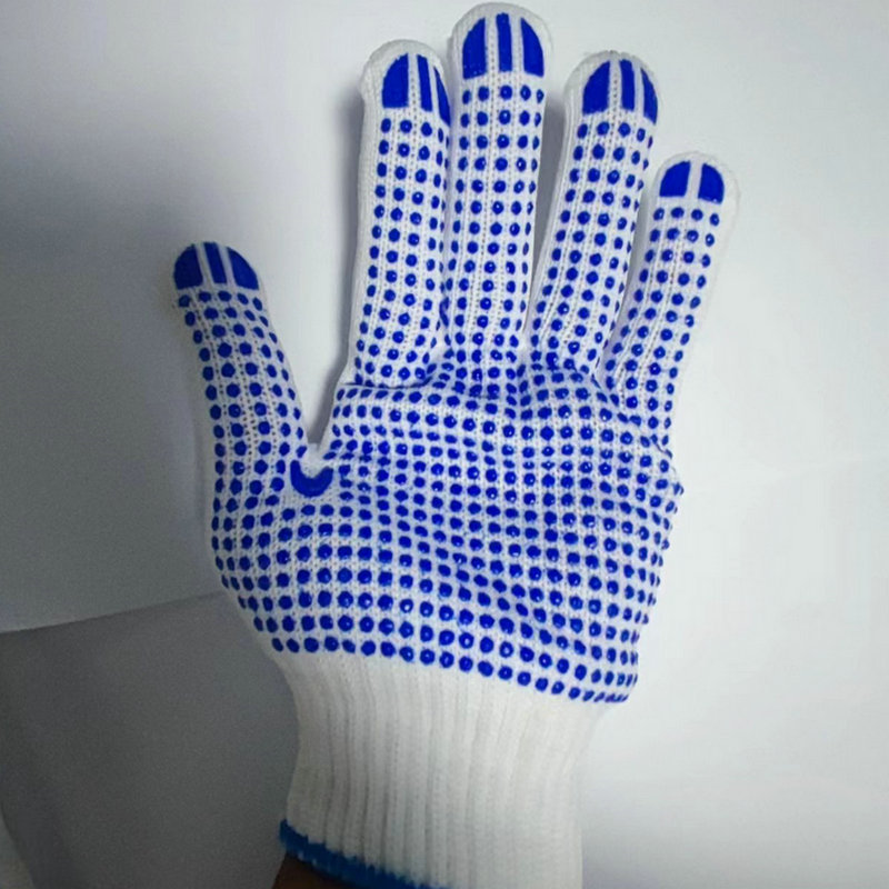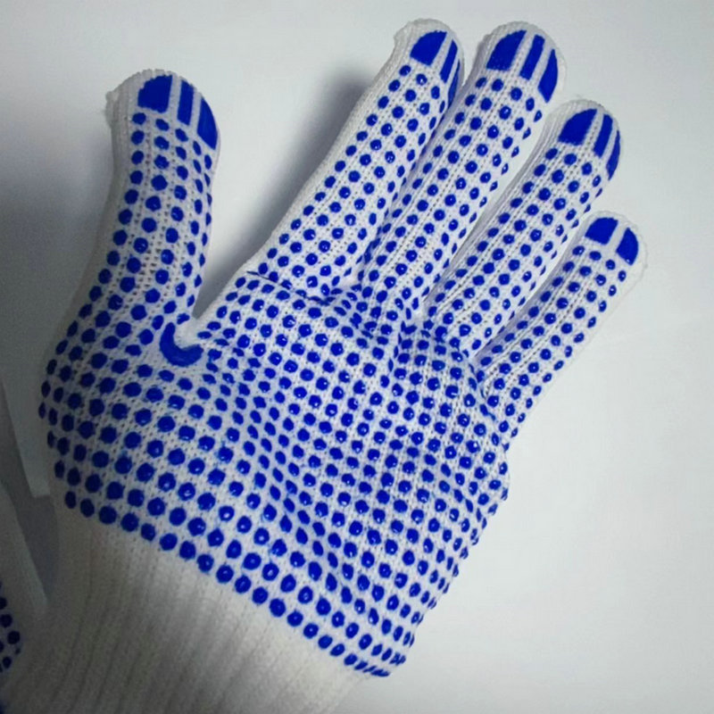 厂家点胶手套尼龙十针耐磨防滑加密防护劳保手套棉纱点塑点珠手套