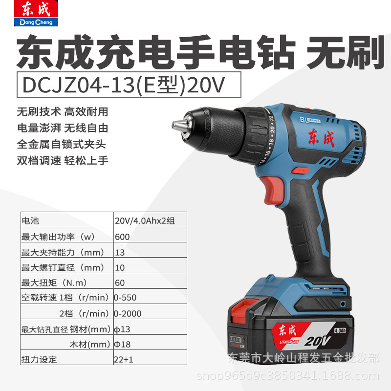 东成20V无刷冲击钻锂电钻无级变速充电式大功率多功能手锤手电钻