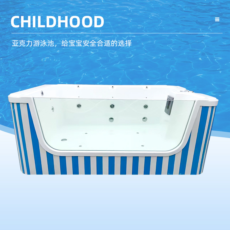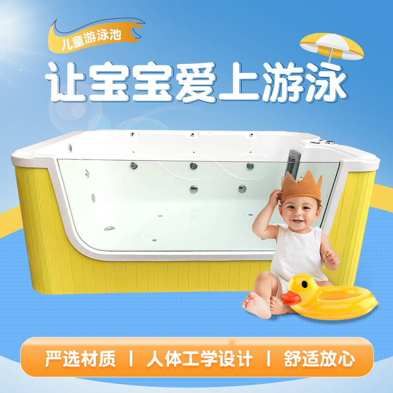 儿童游泳池亚克力游泳池游泳馆母婴店婴儿气泡冲浪一面玻璃游泳池