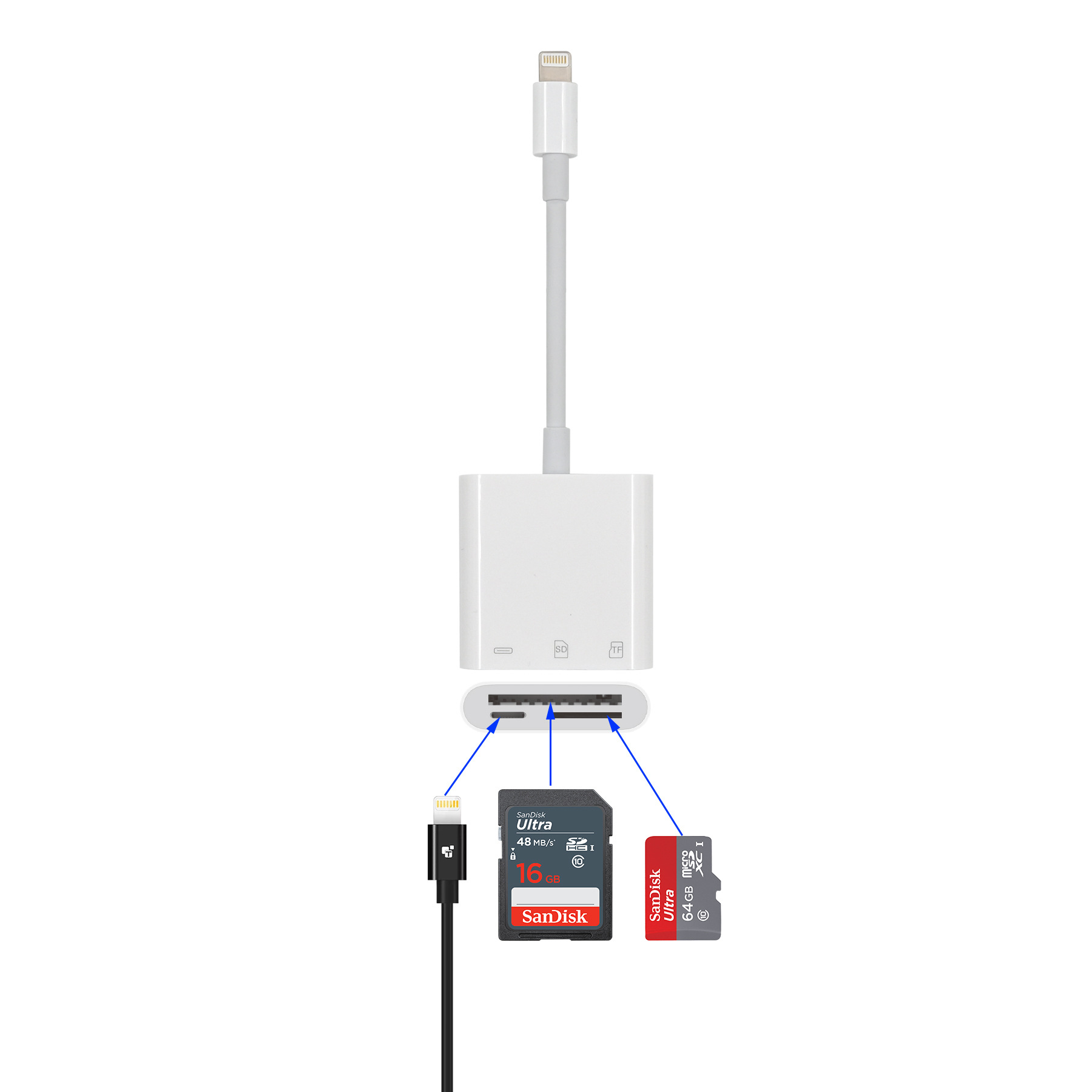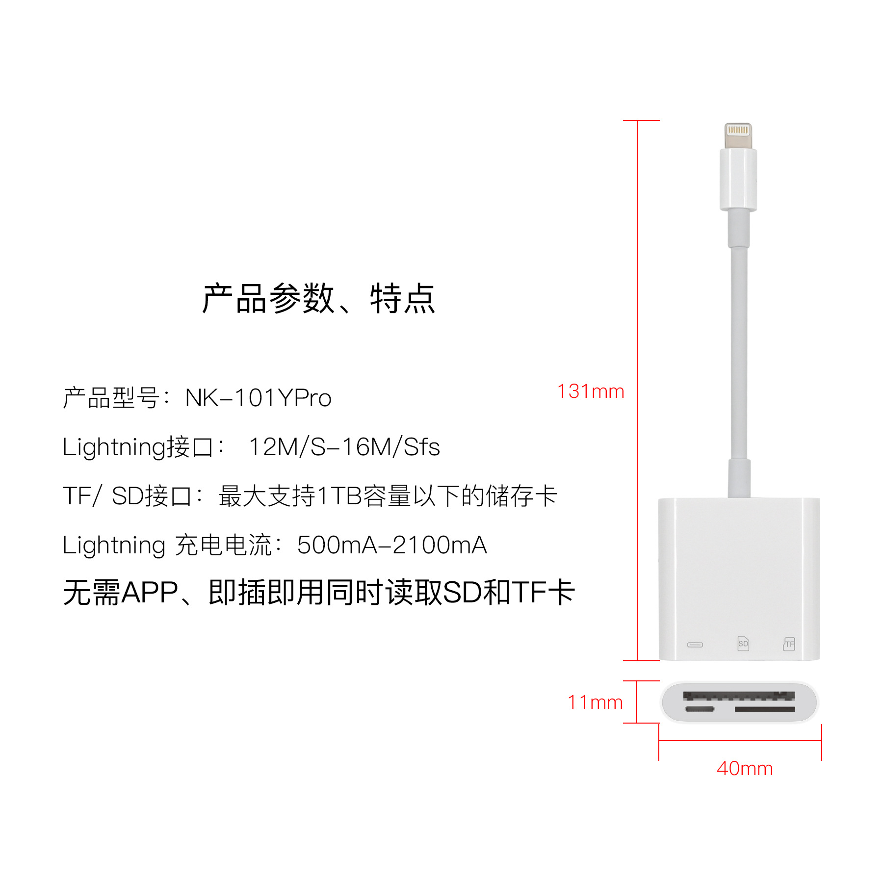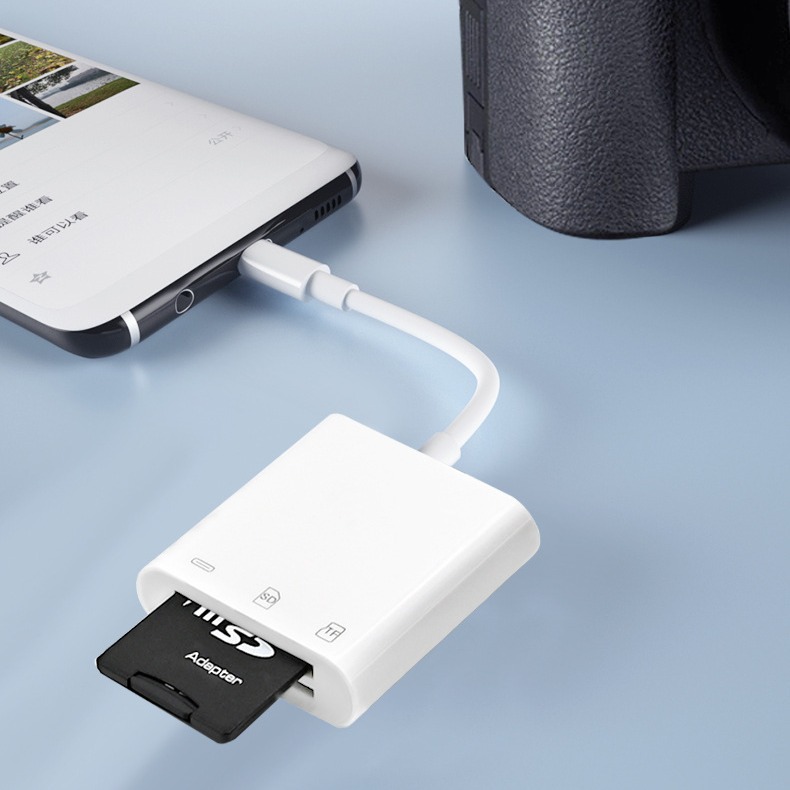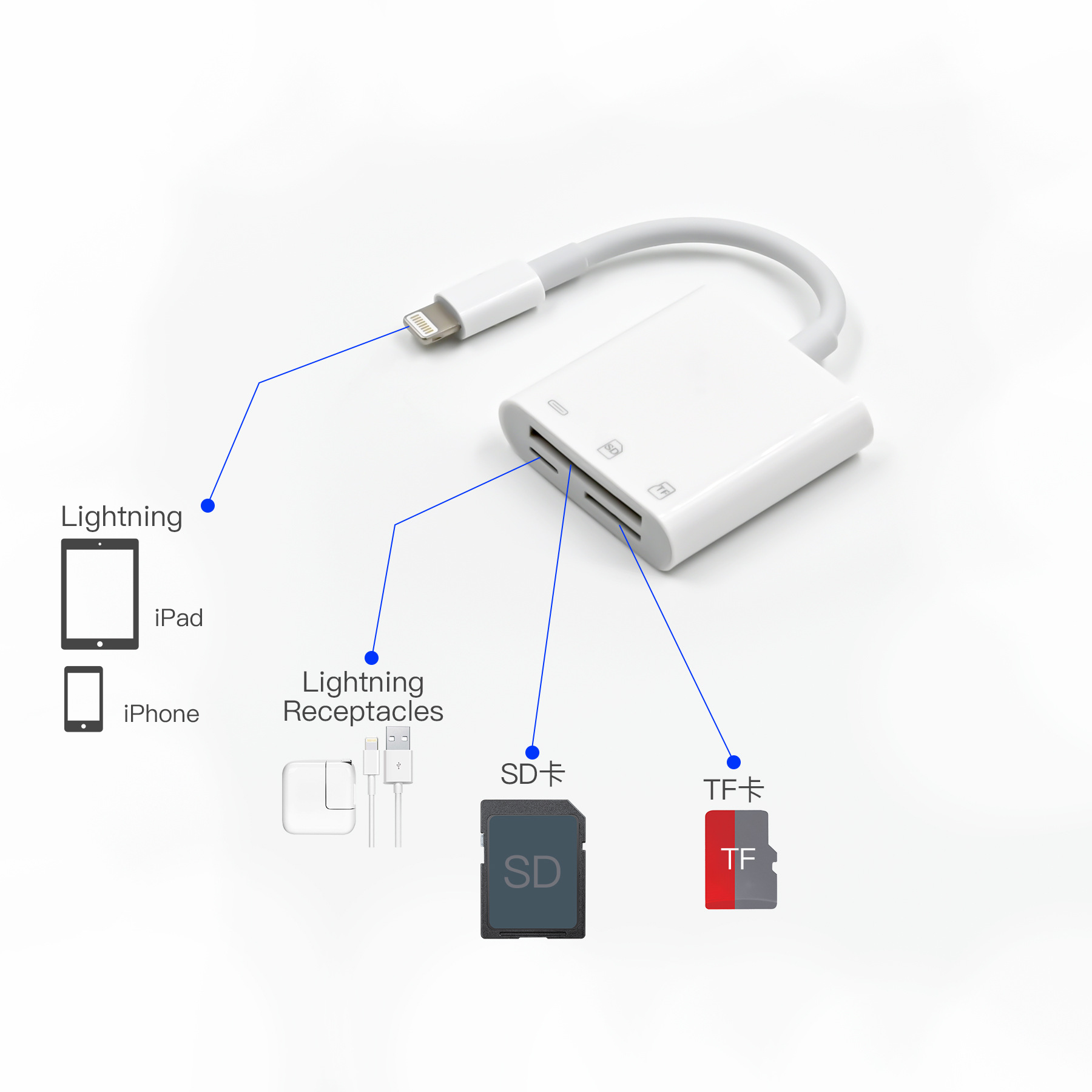适用苹果14Pro SD TF卡读卡器 即插即用支持双卡写读取传输读卡器