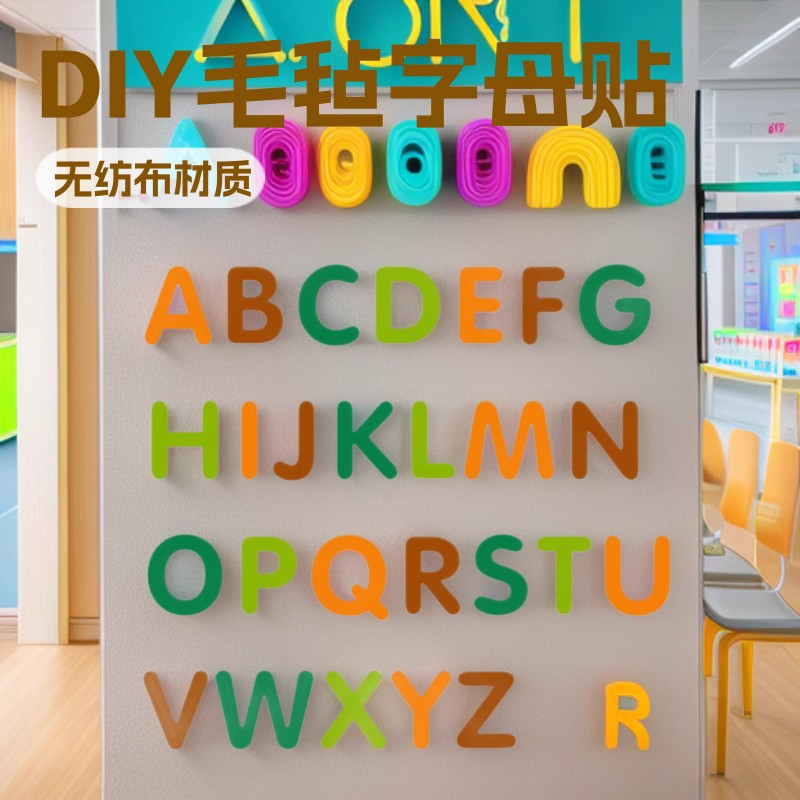 跨境字母贴背胶毛毡板幼儿园宝宝益智早教学习板立体毛毡魔术贴
