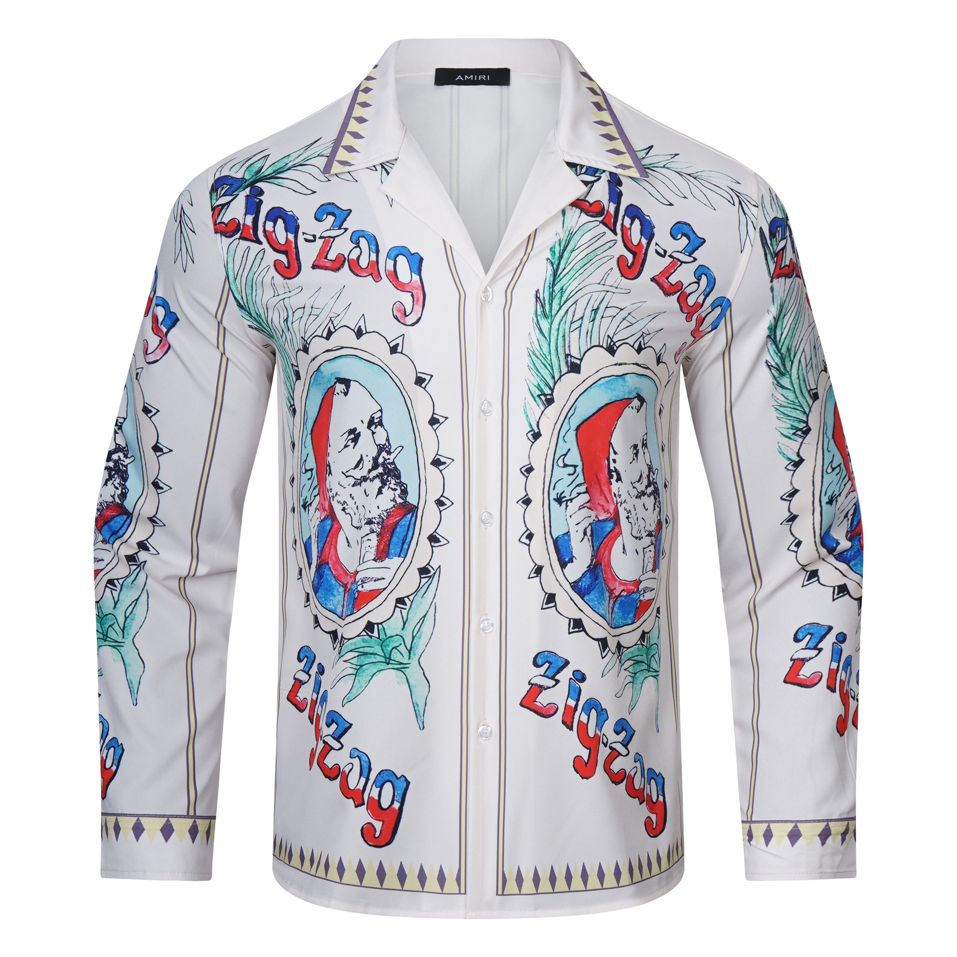 新款街潮男士衬衫 Amiri人物头像印花字母Zig修身长袖衬衫 男女款