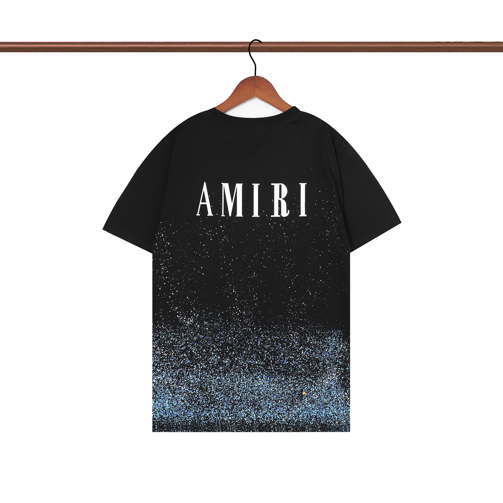 跨境夏季新款泼漆油漆点印花欧美高街宽松时尚amiri短袖T恤男女款